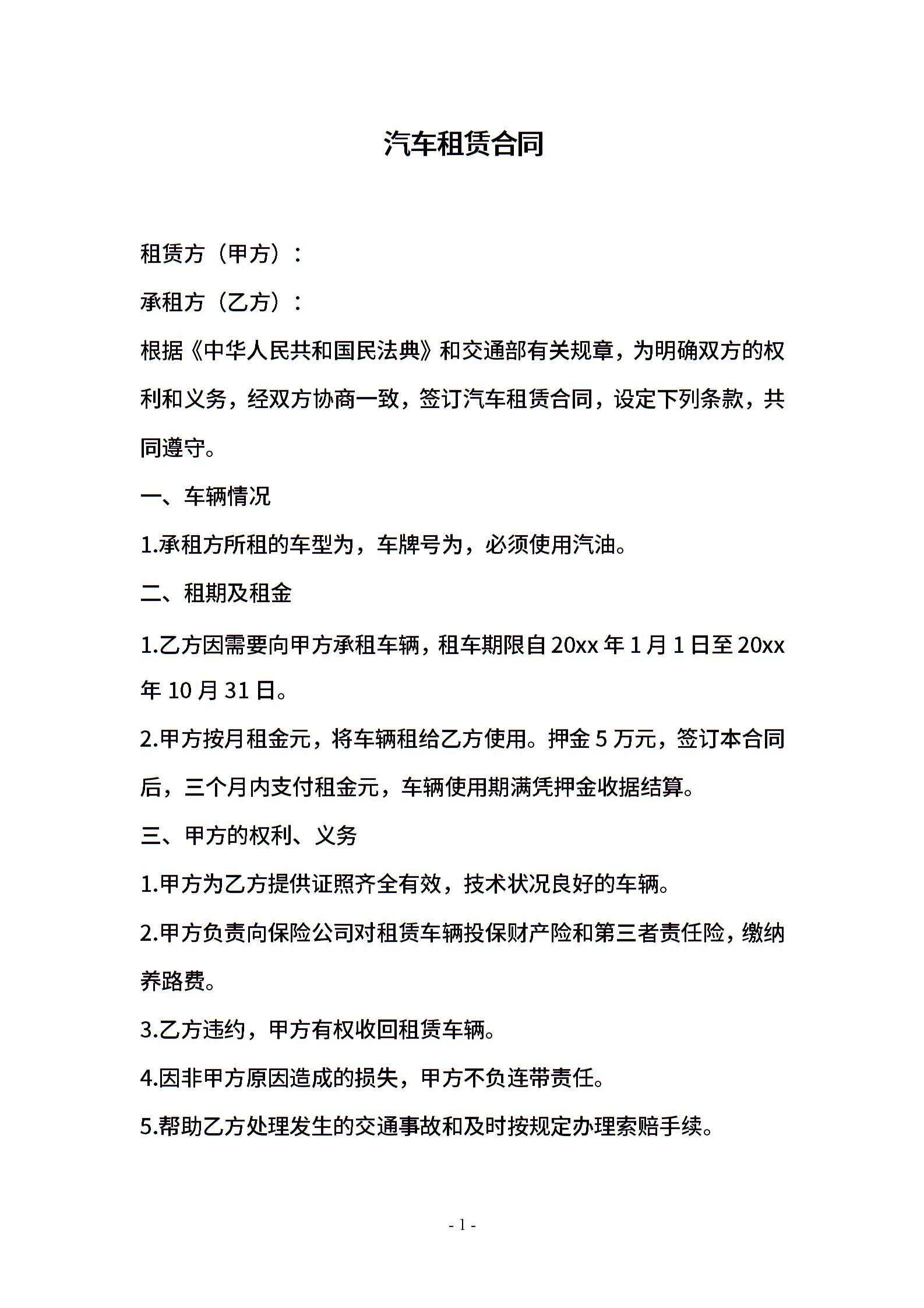 汽车租赁合同 (2)