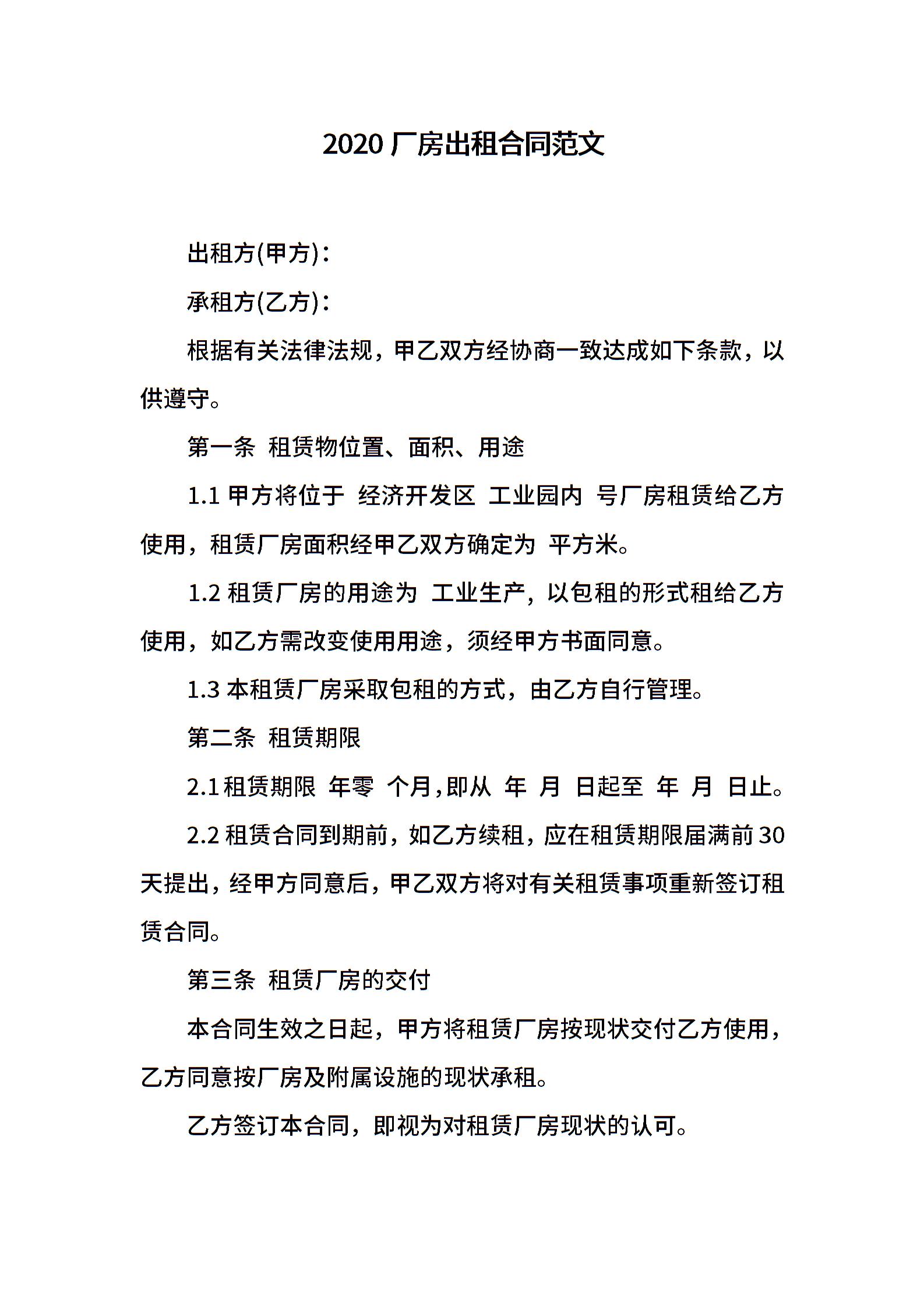 厂房出租合同范文 (002)