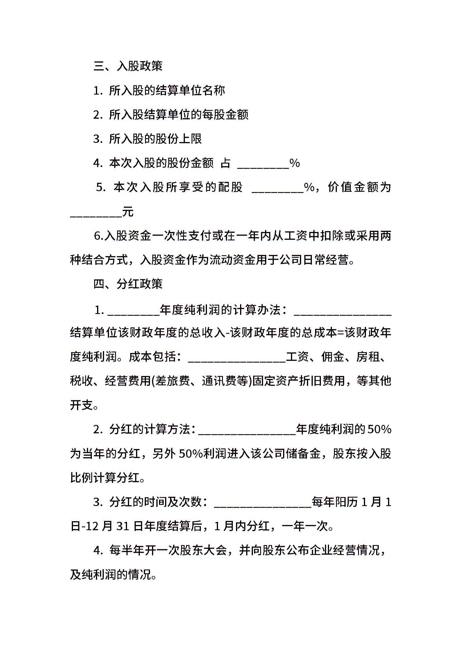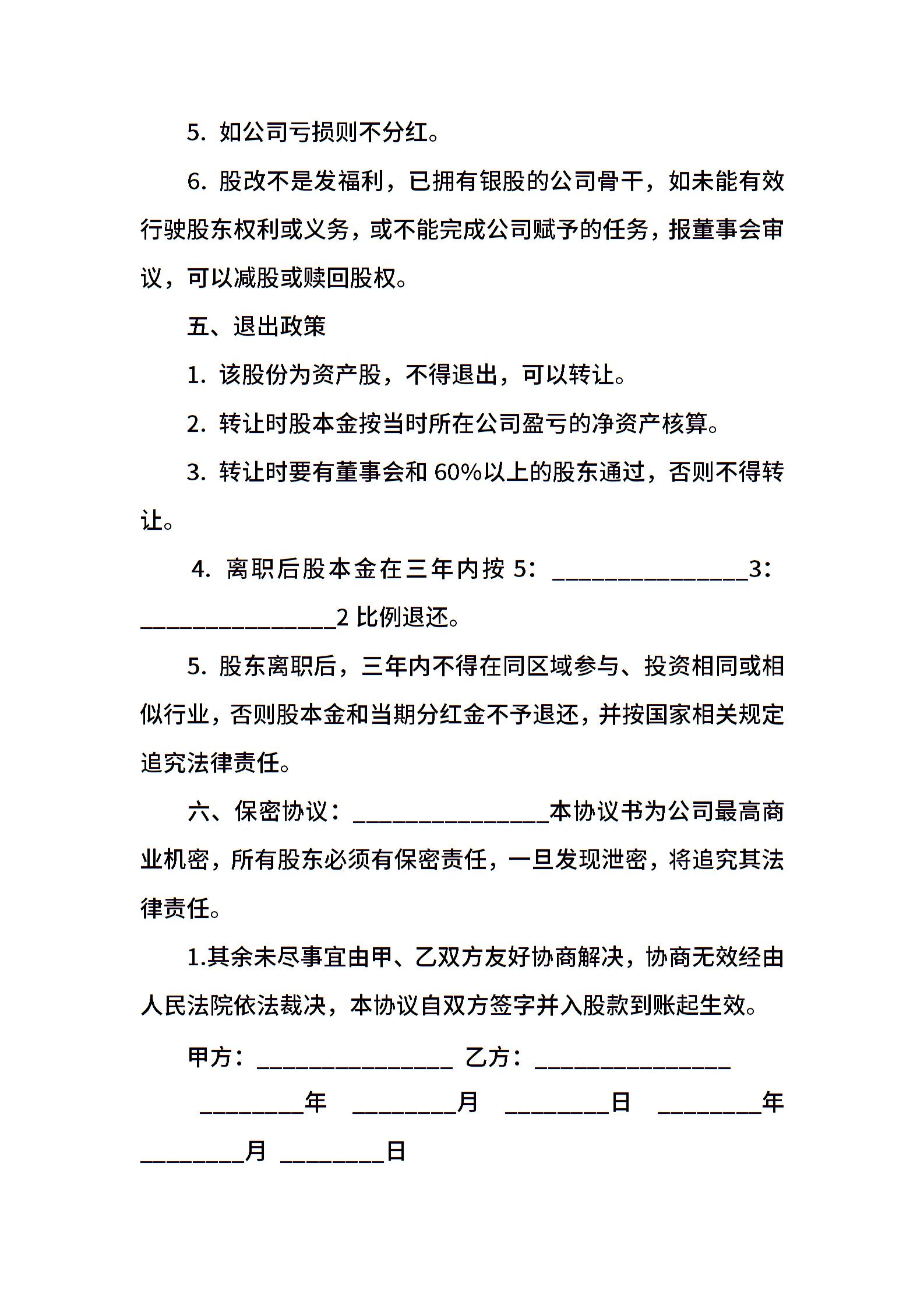 • 分类 出资协议