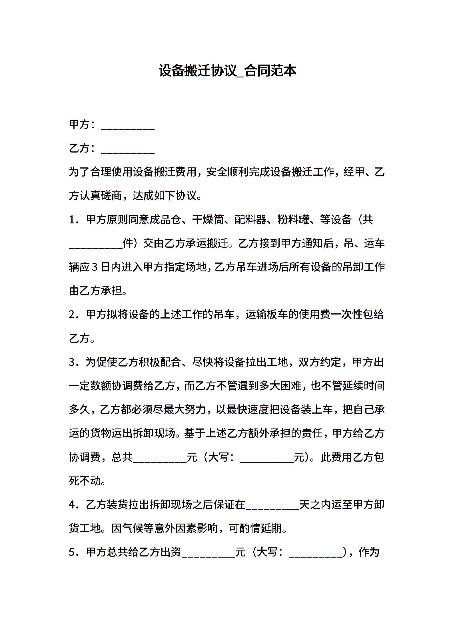 设备搬迁协议_合同范本