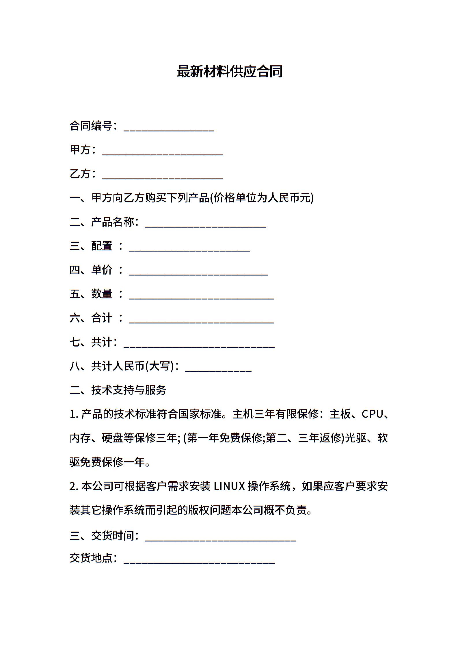 最新材料供应合同