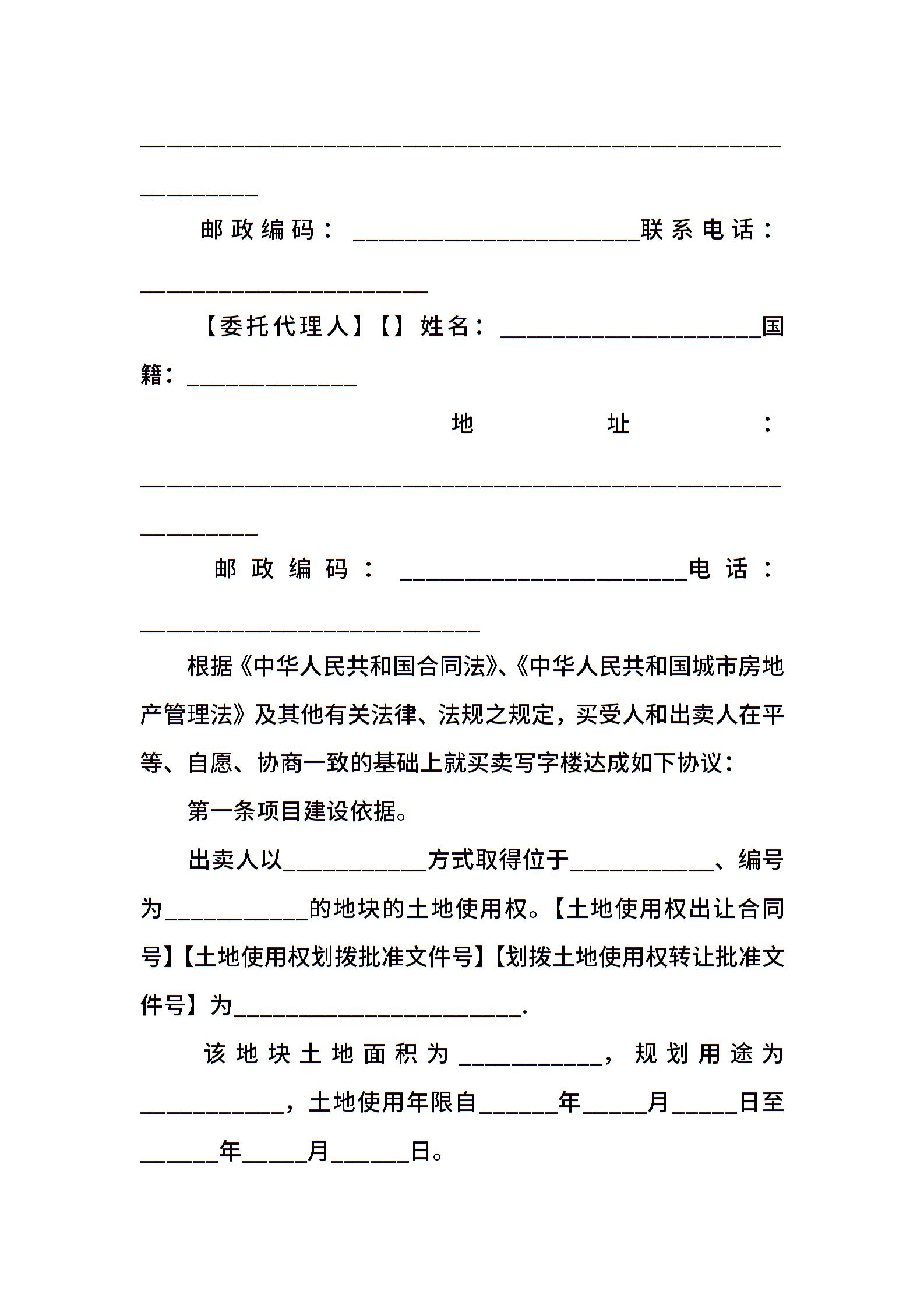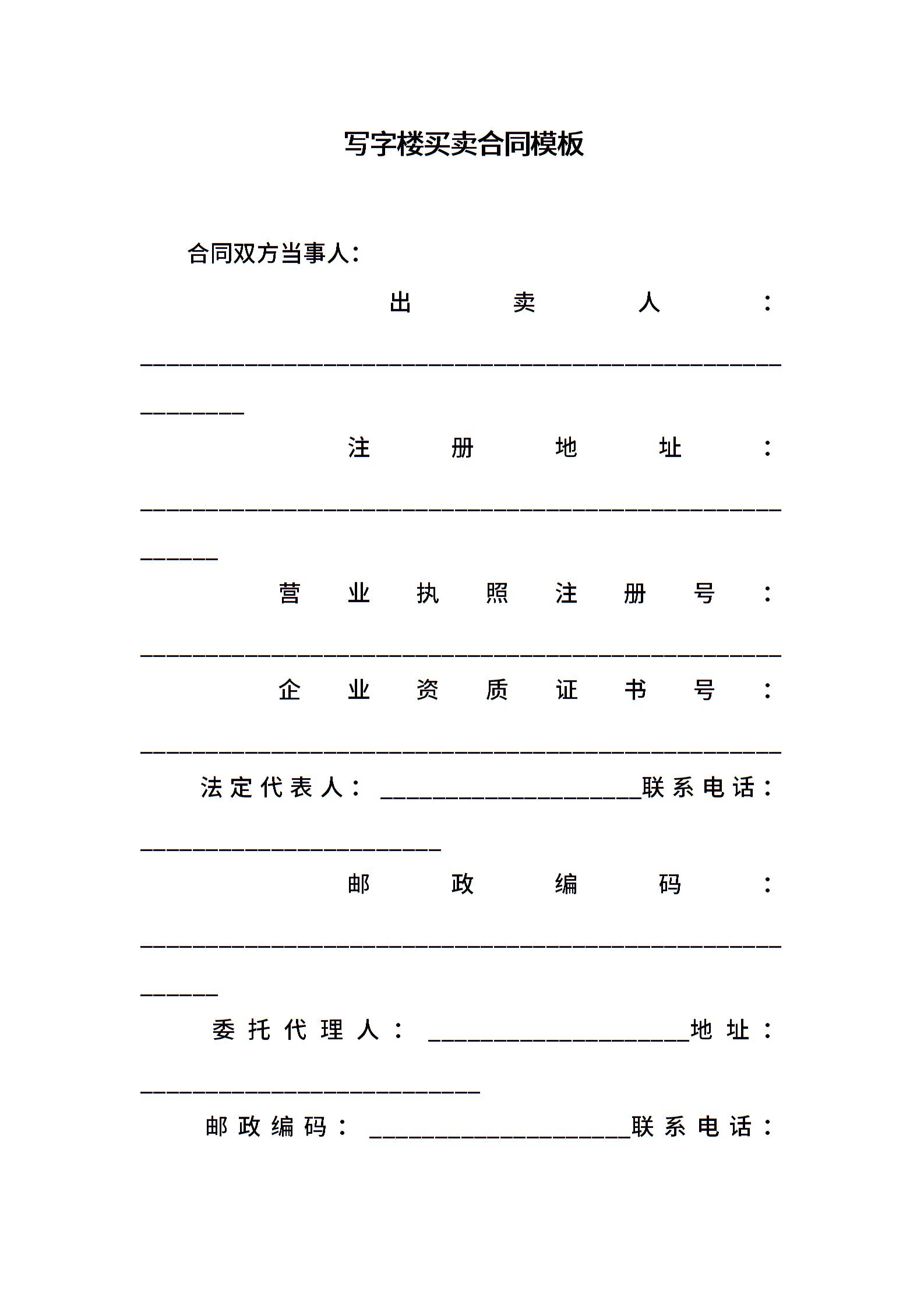 写字楼买卖合同模板