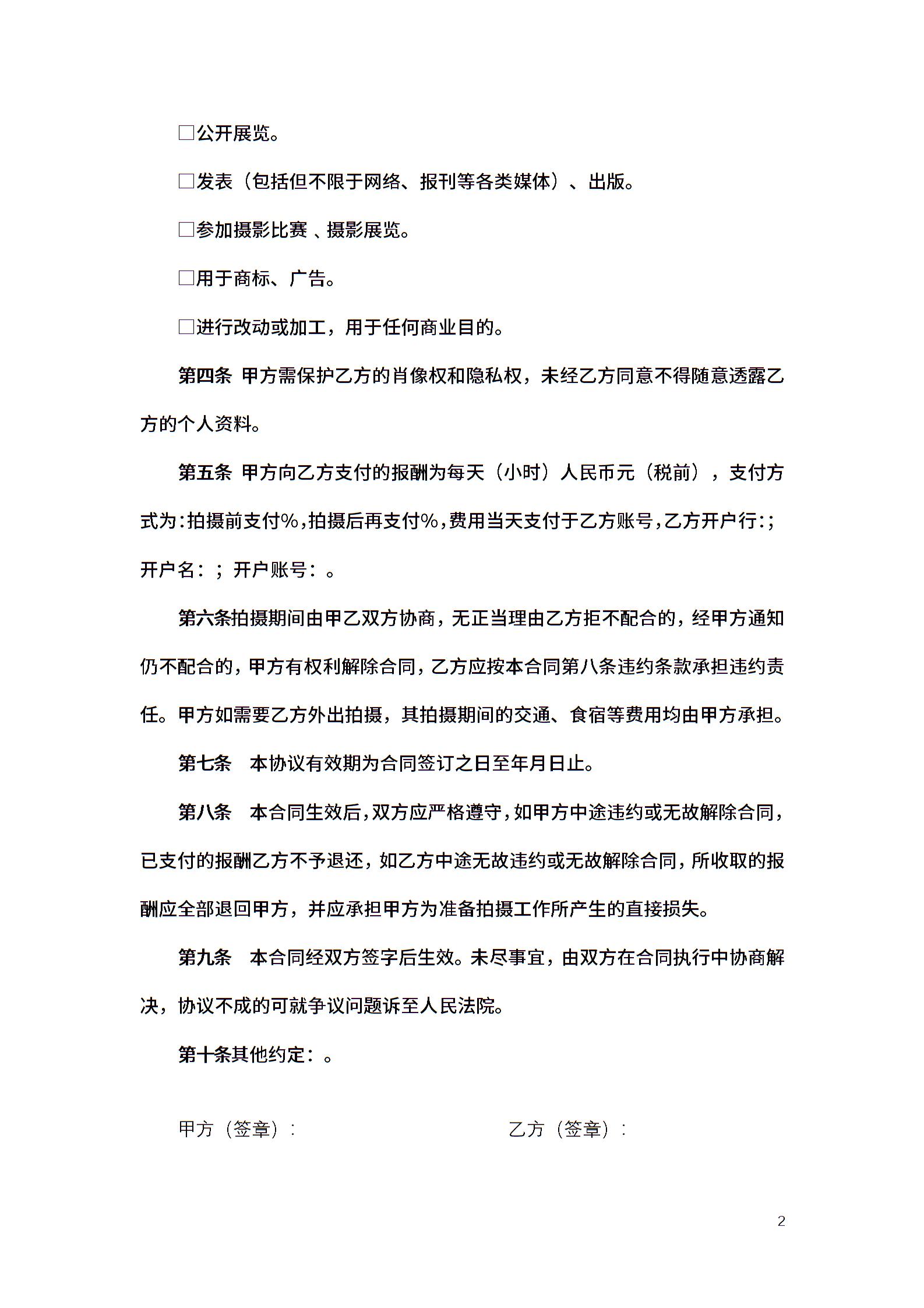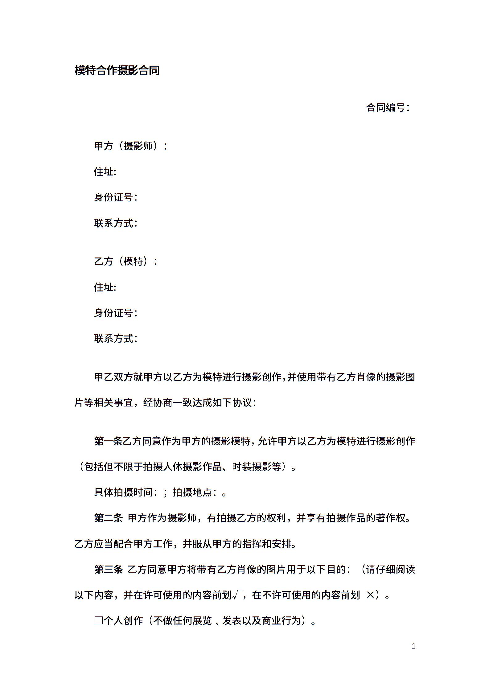 模特合作摄影合同
