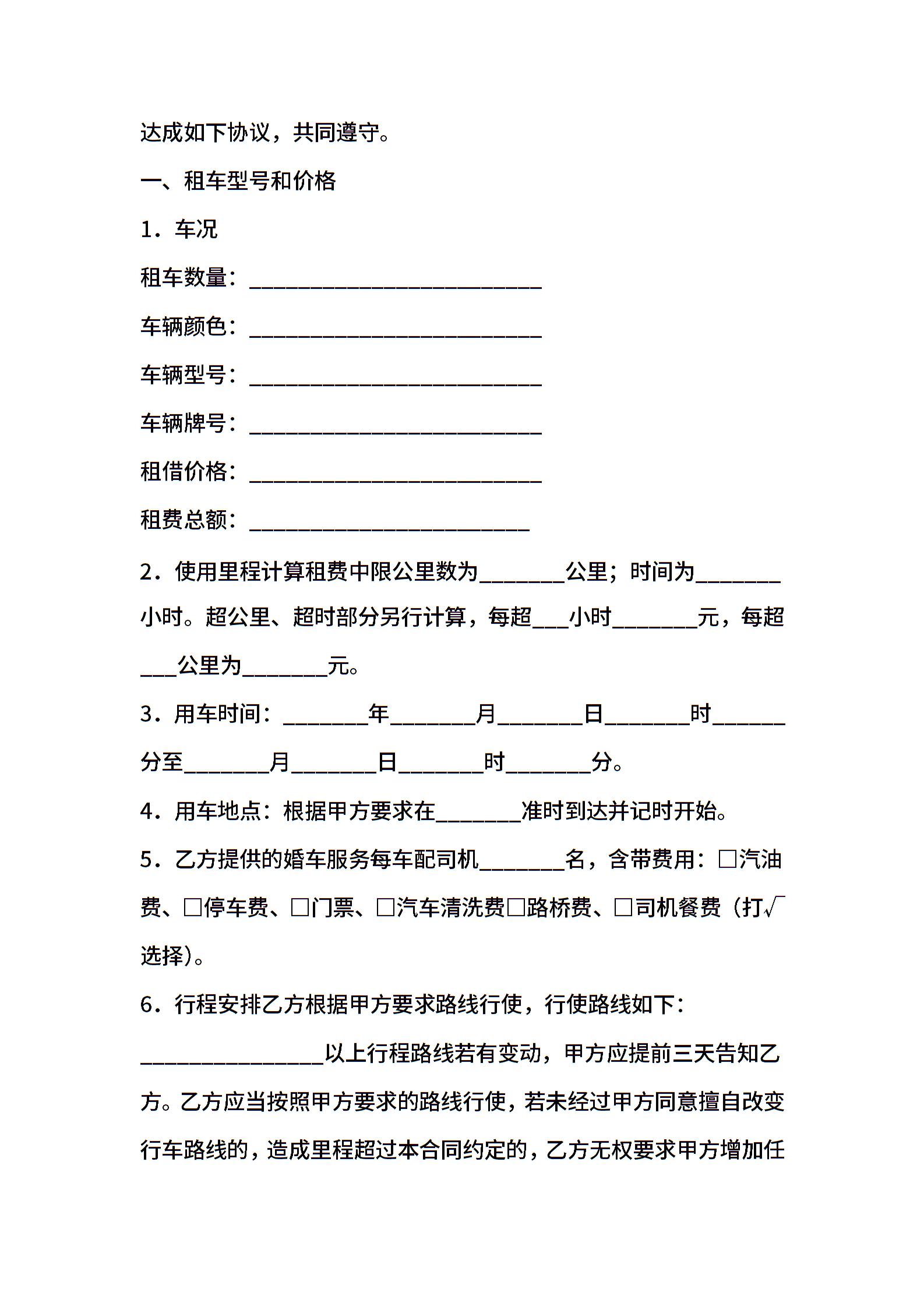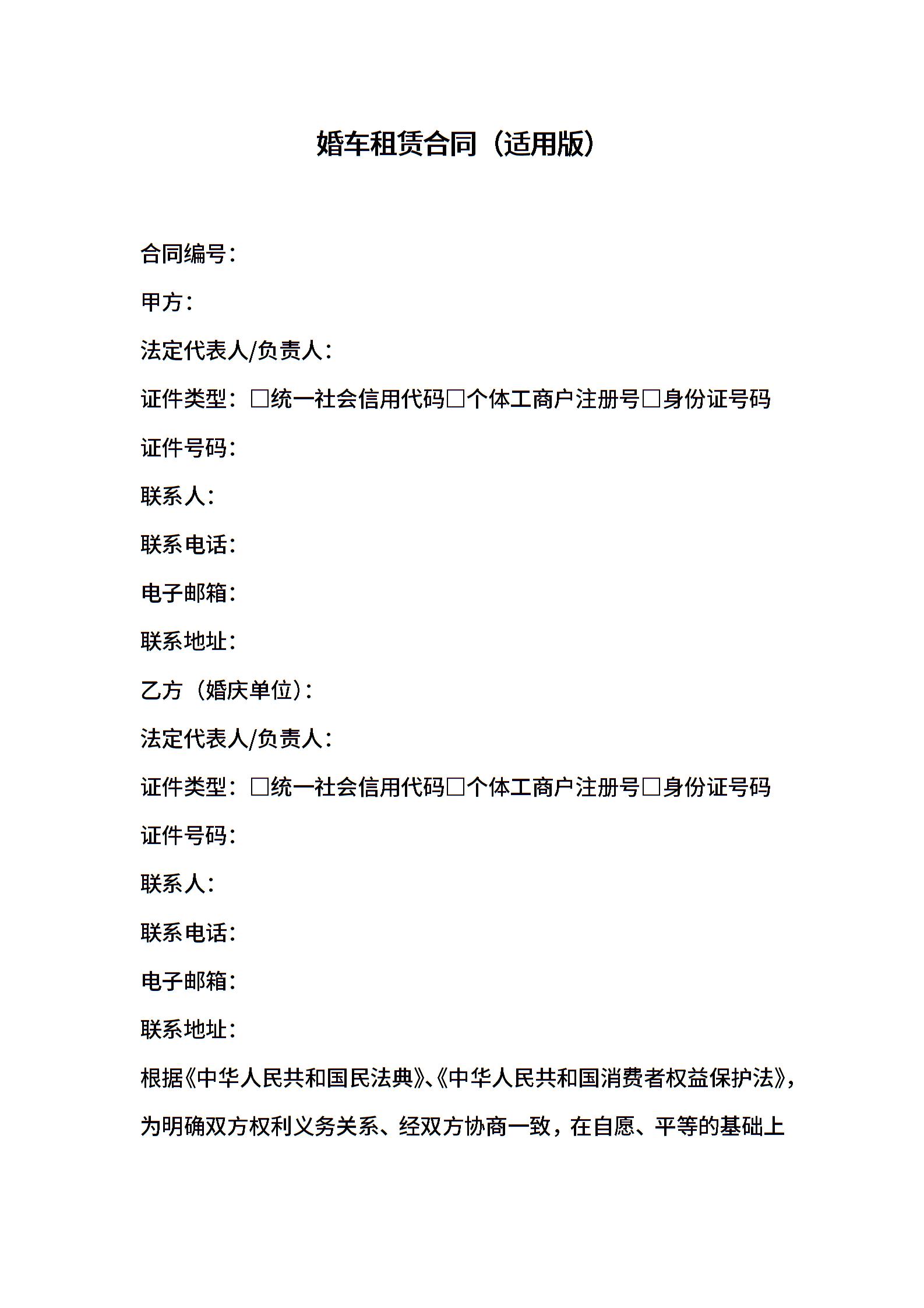 婚车租赁合同(适用版)