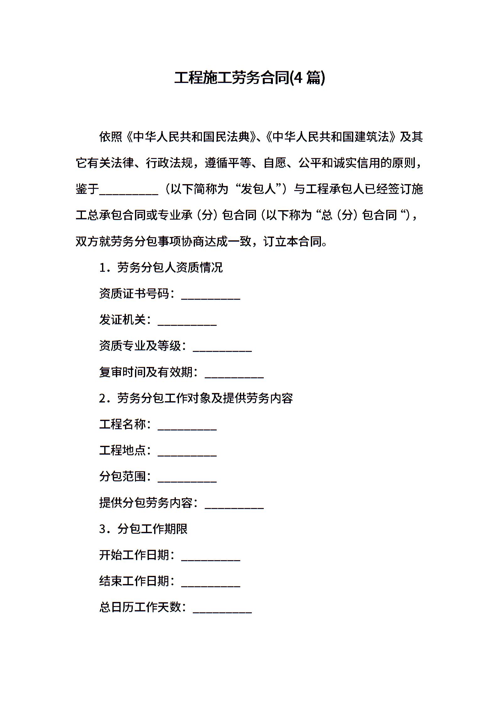工程施工劳务合同(4篇)