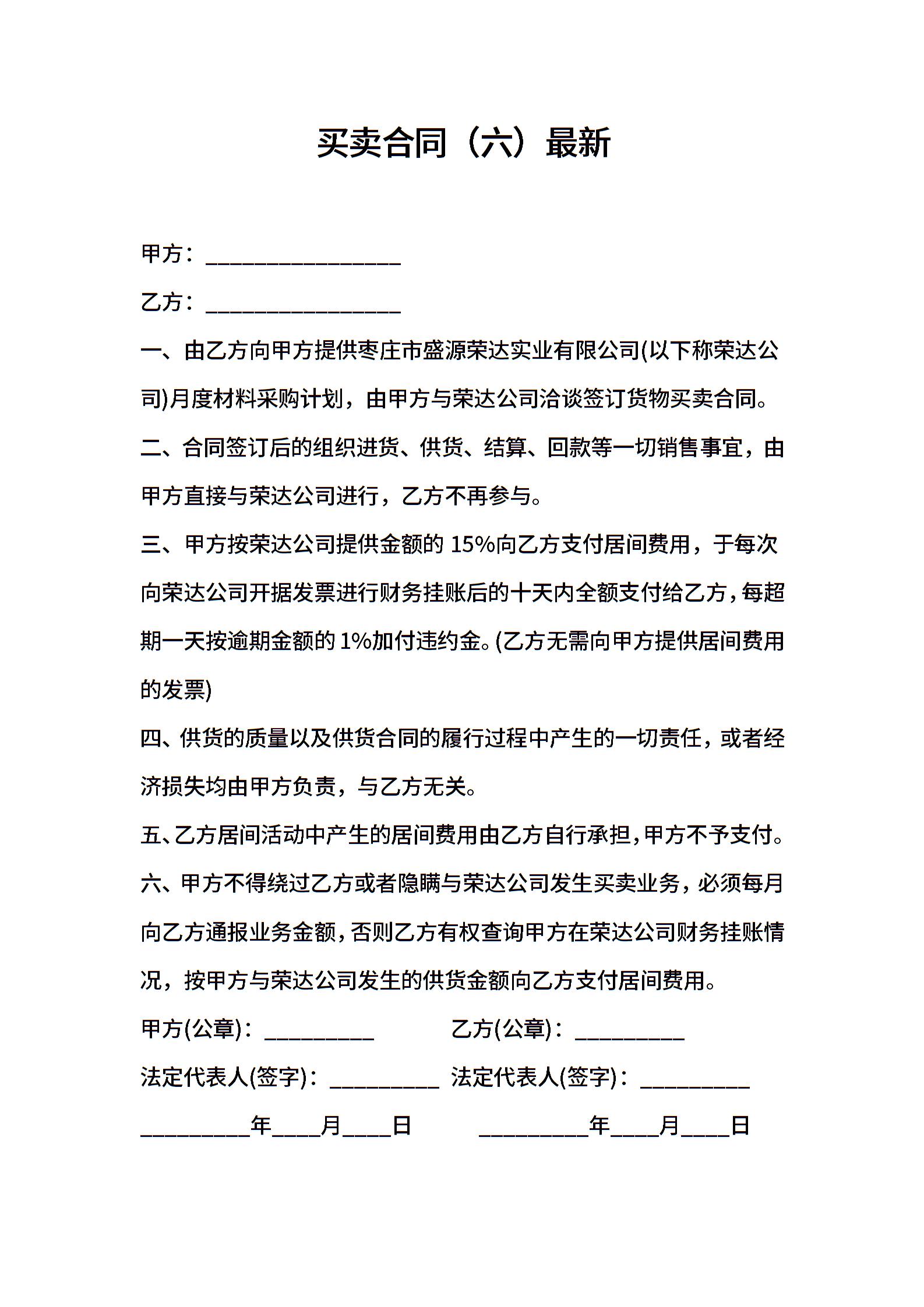 买卖合同(六)最新