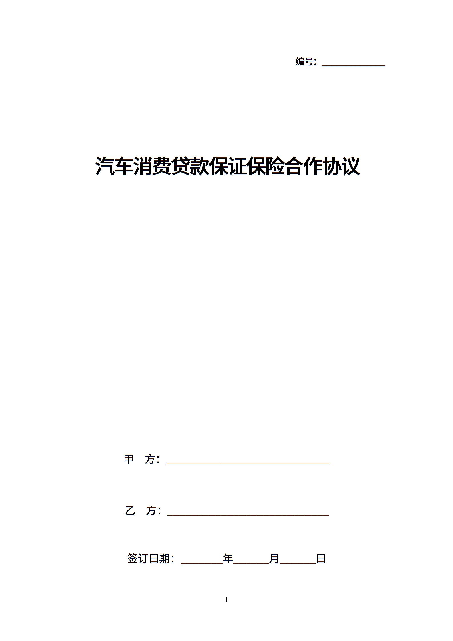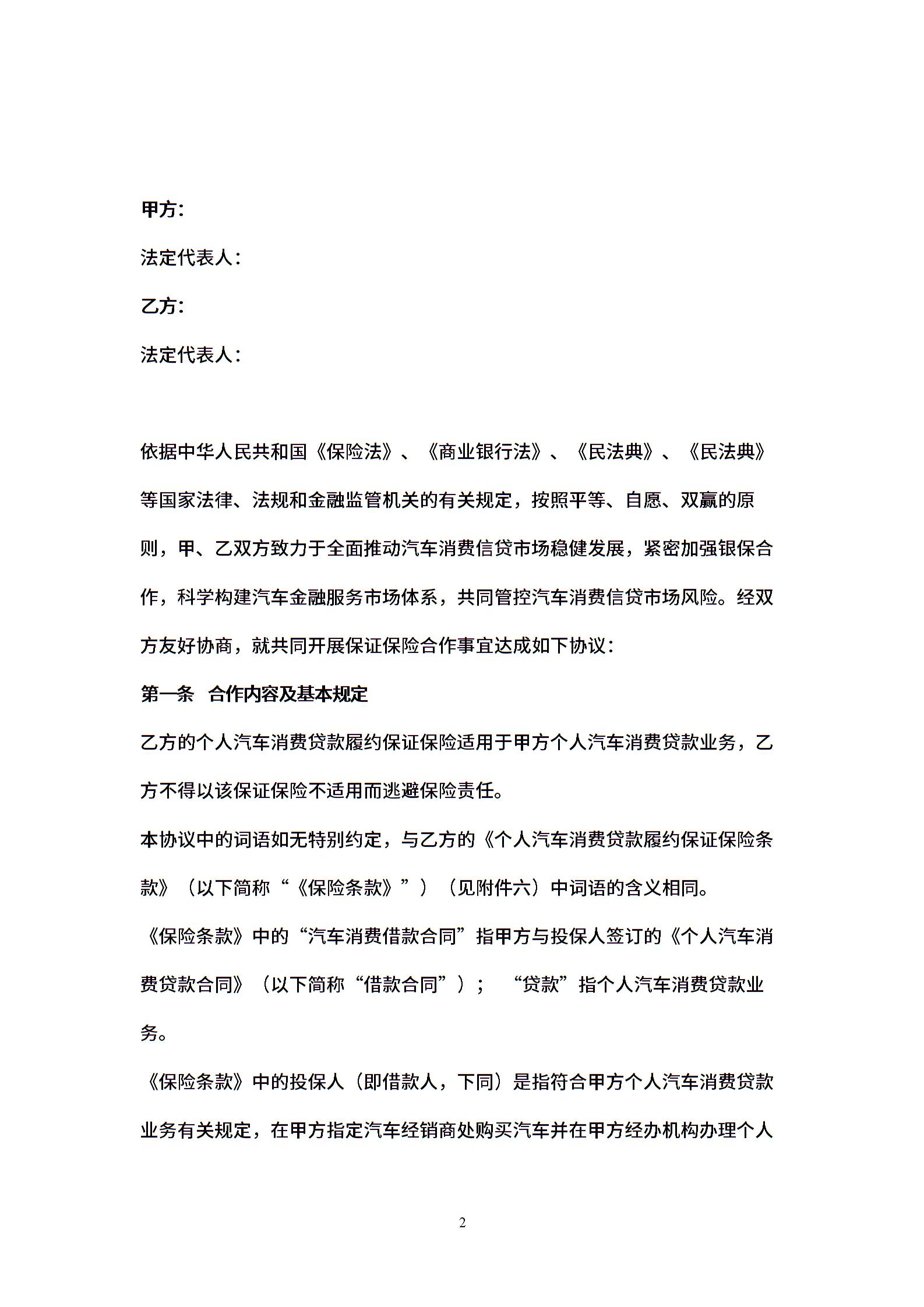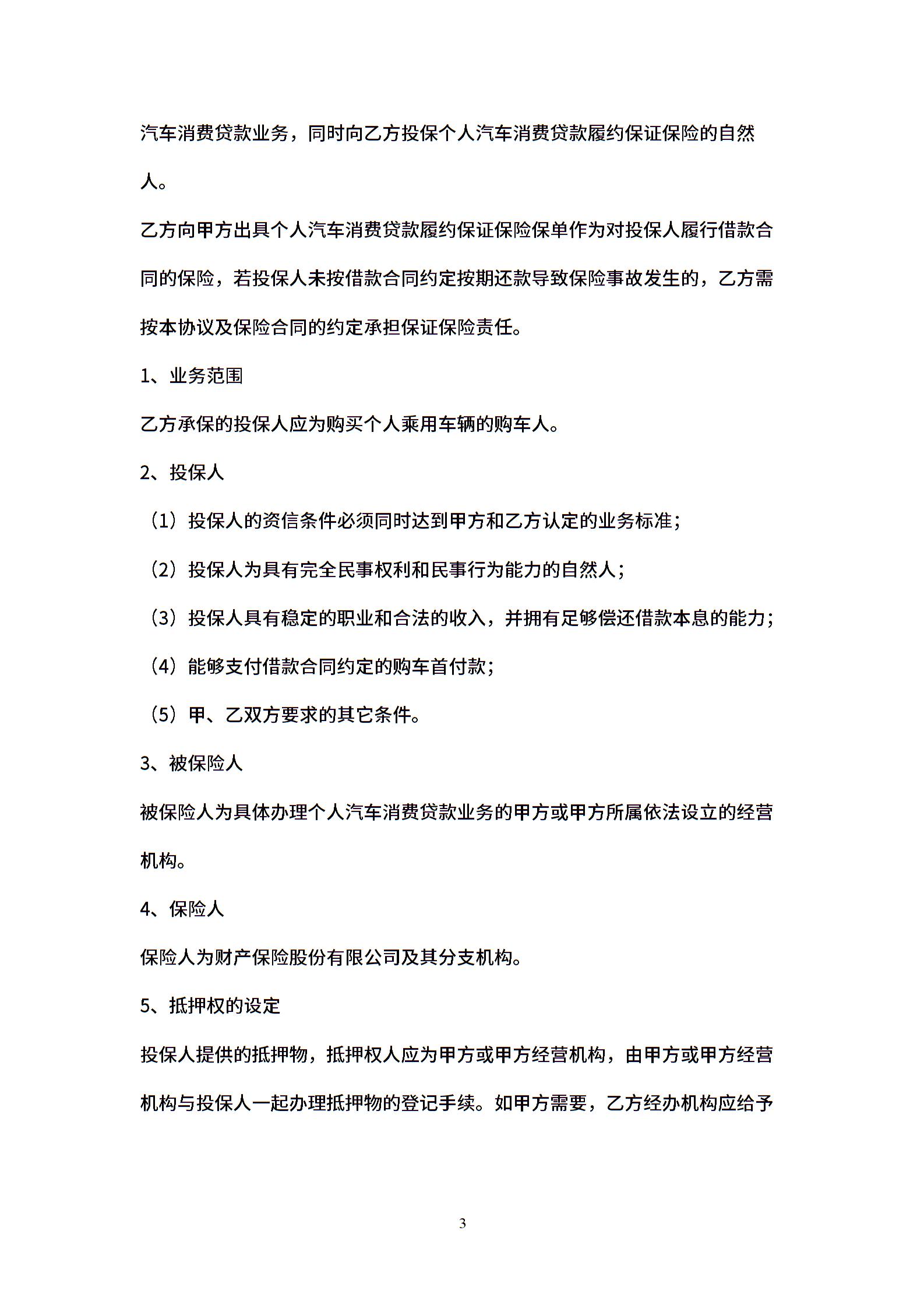 汽车消费贷款保证保险合作合同协议书范本.docx