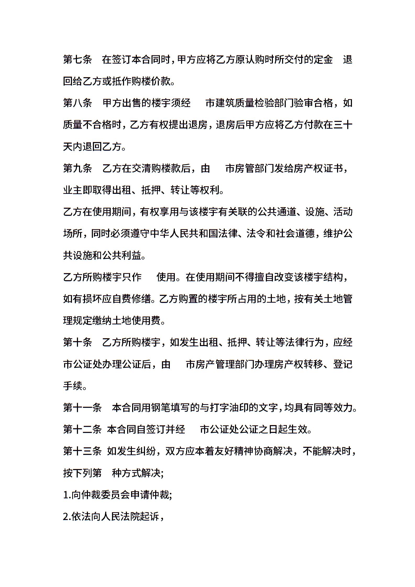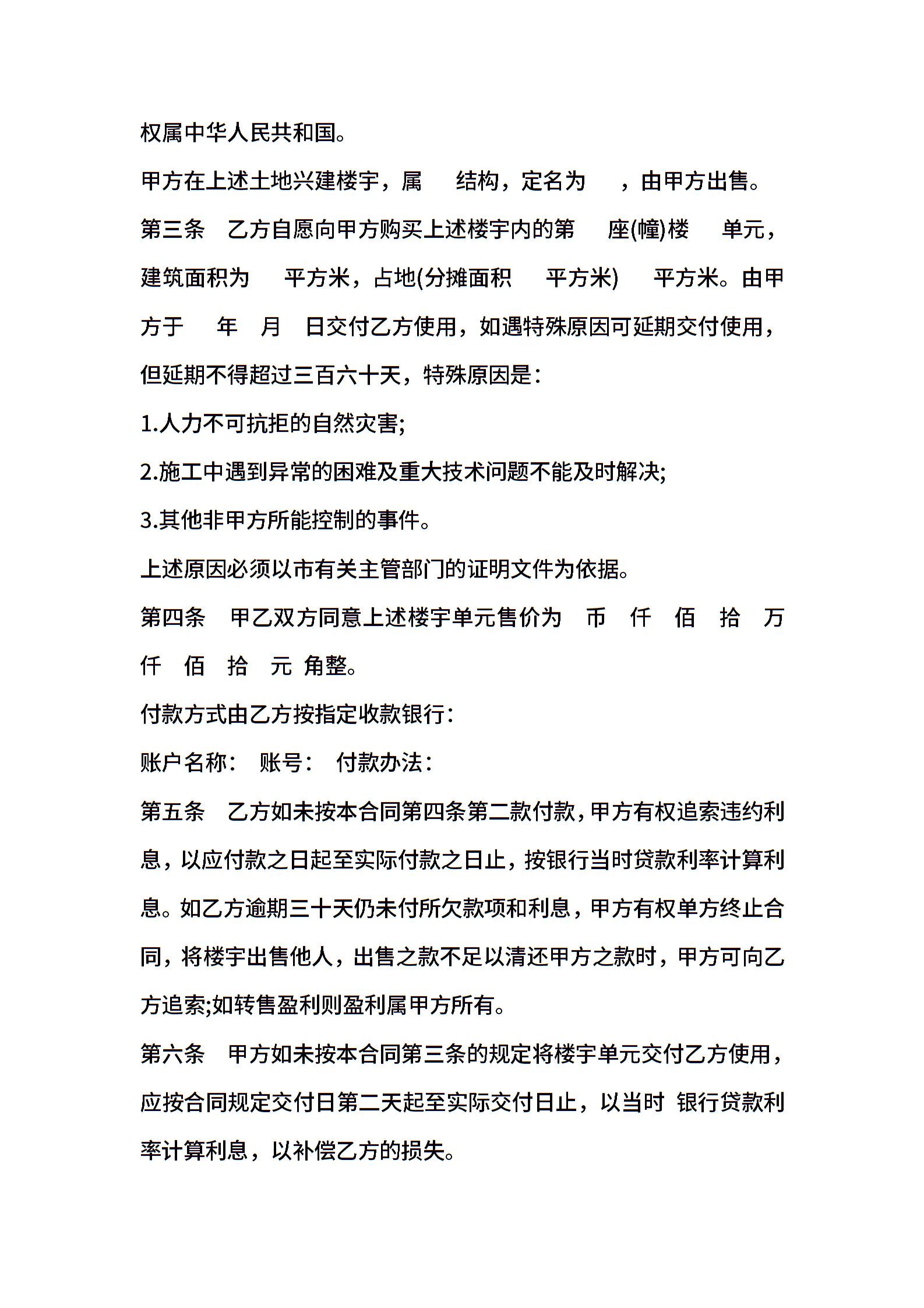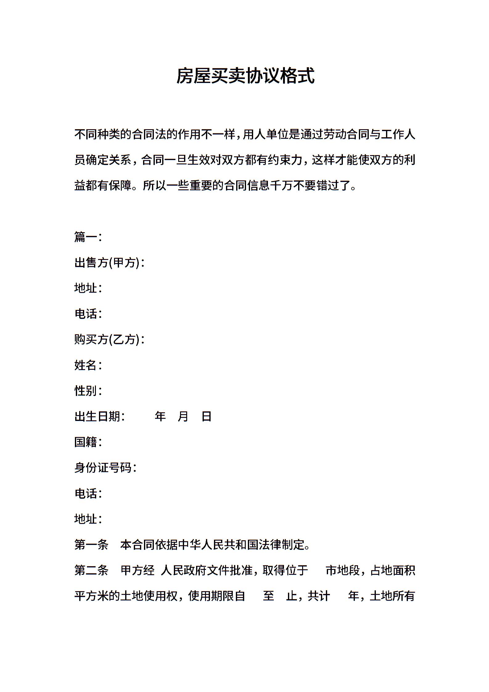 房屋买卖协议格式