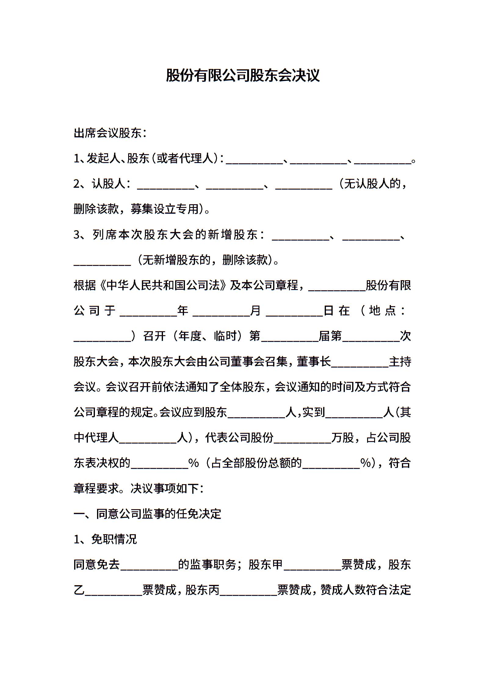 当前位置:量子办公 > 合同模板 > 股东会决议 >