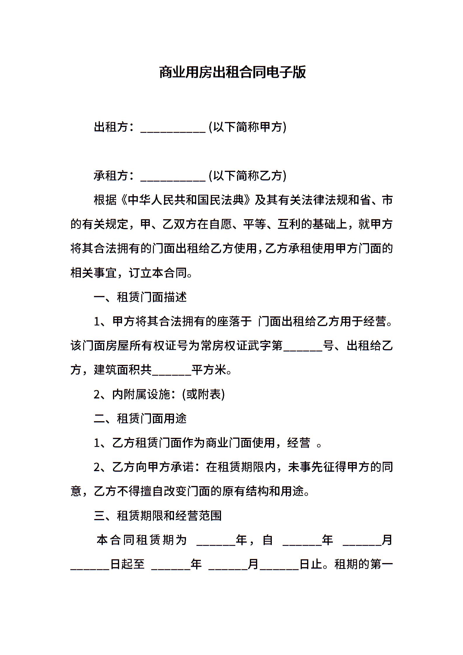 商业用房出租合同电子版