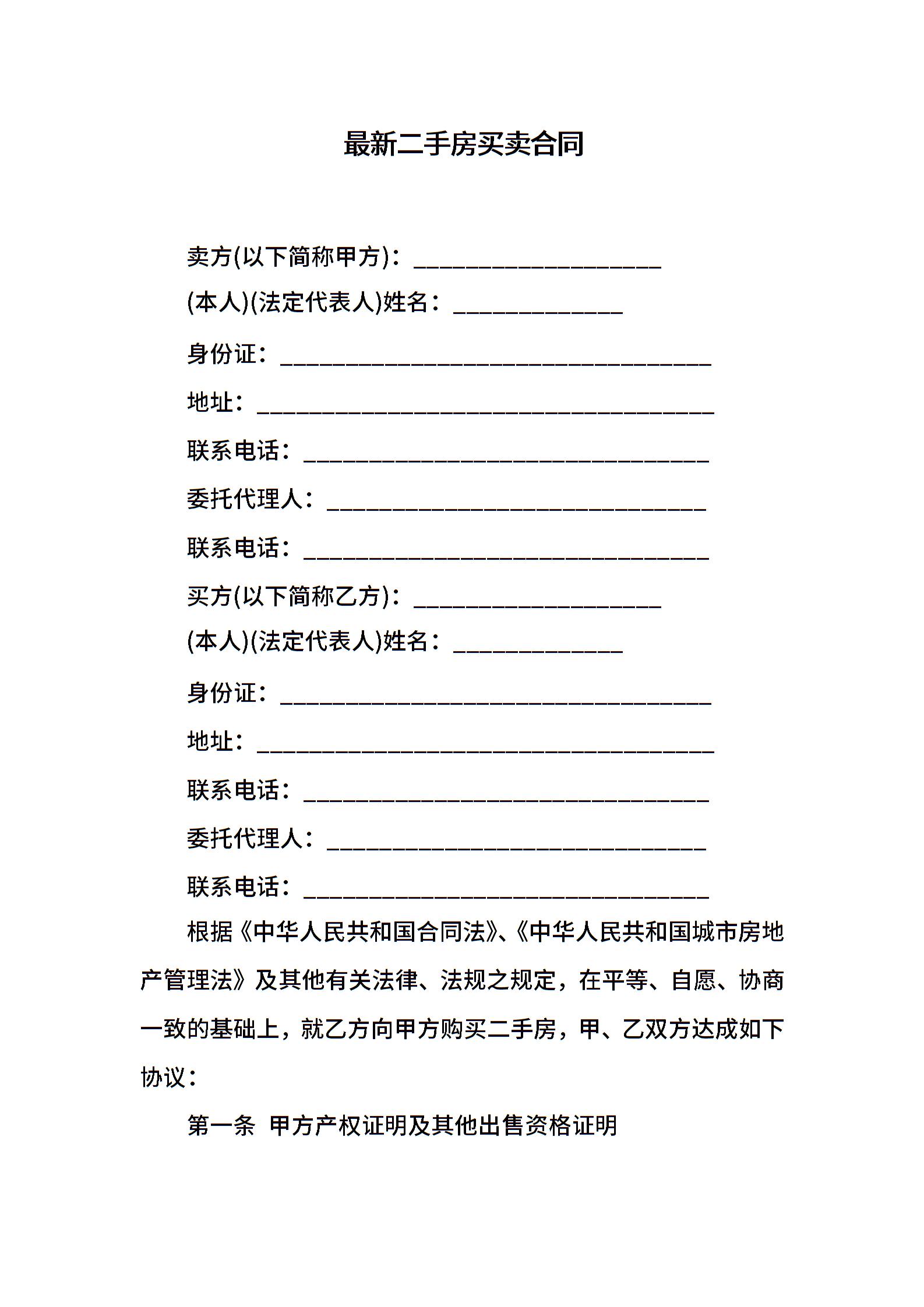 最新二手房买卖合同