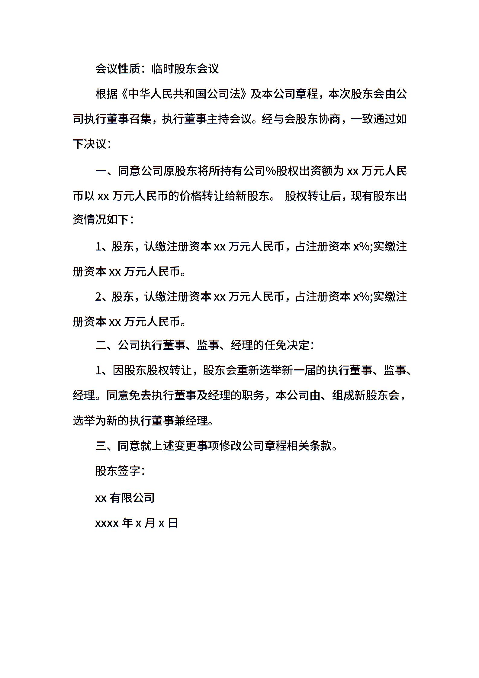 • 分类 股东会决议