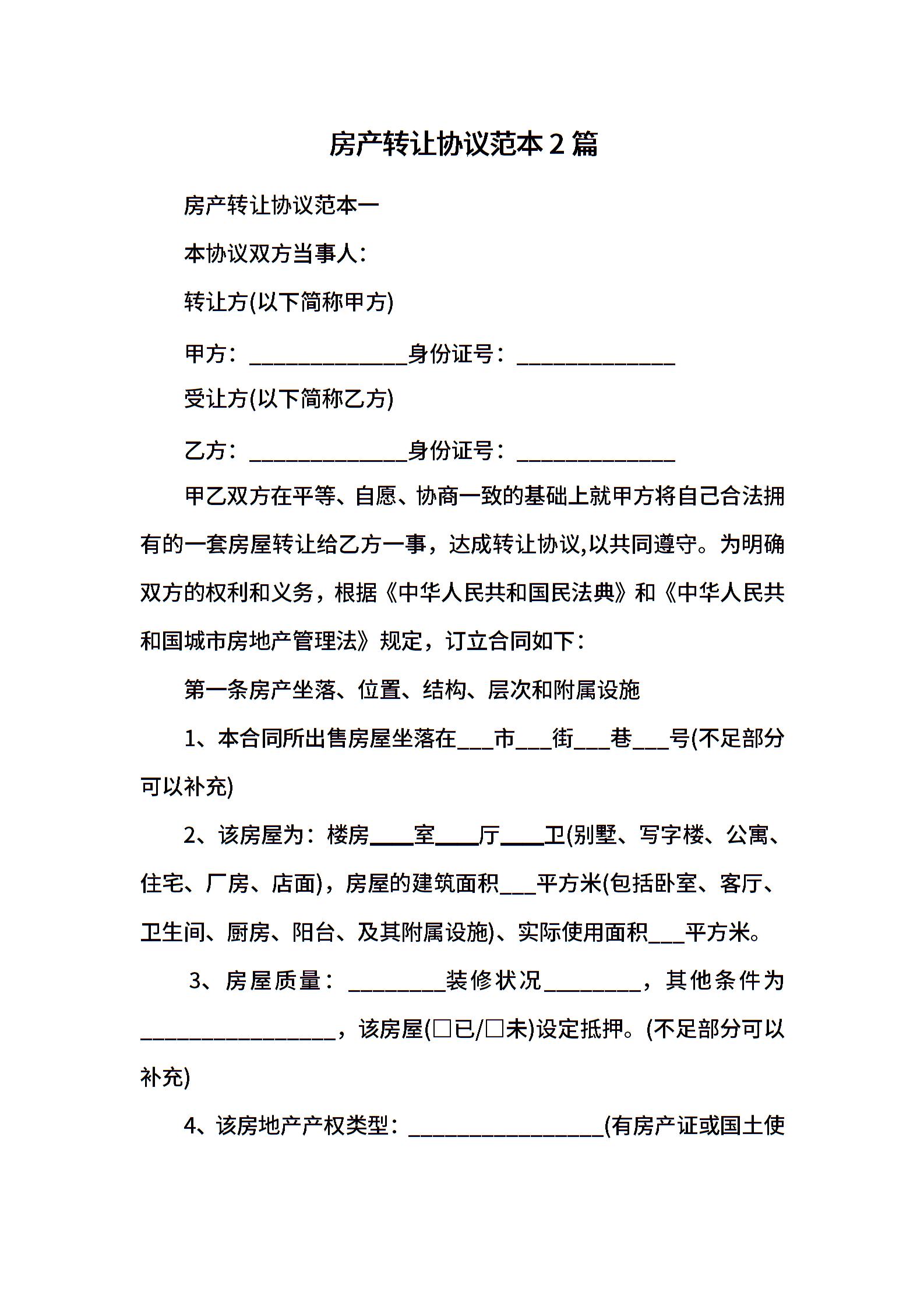 房产转让协议范本2篇