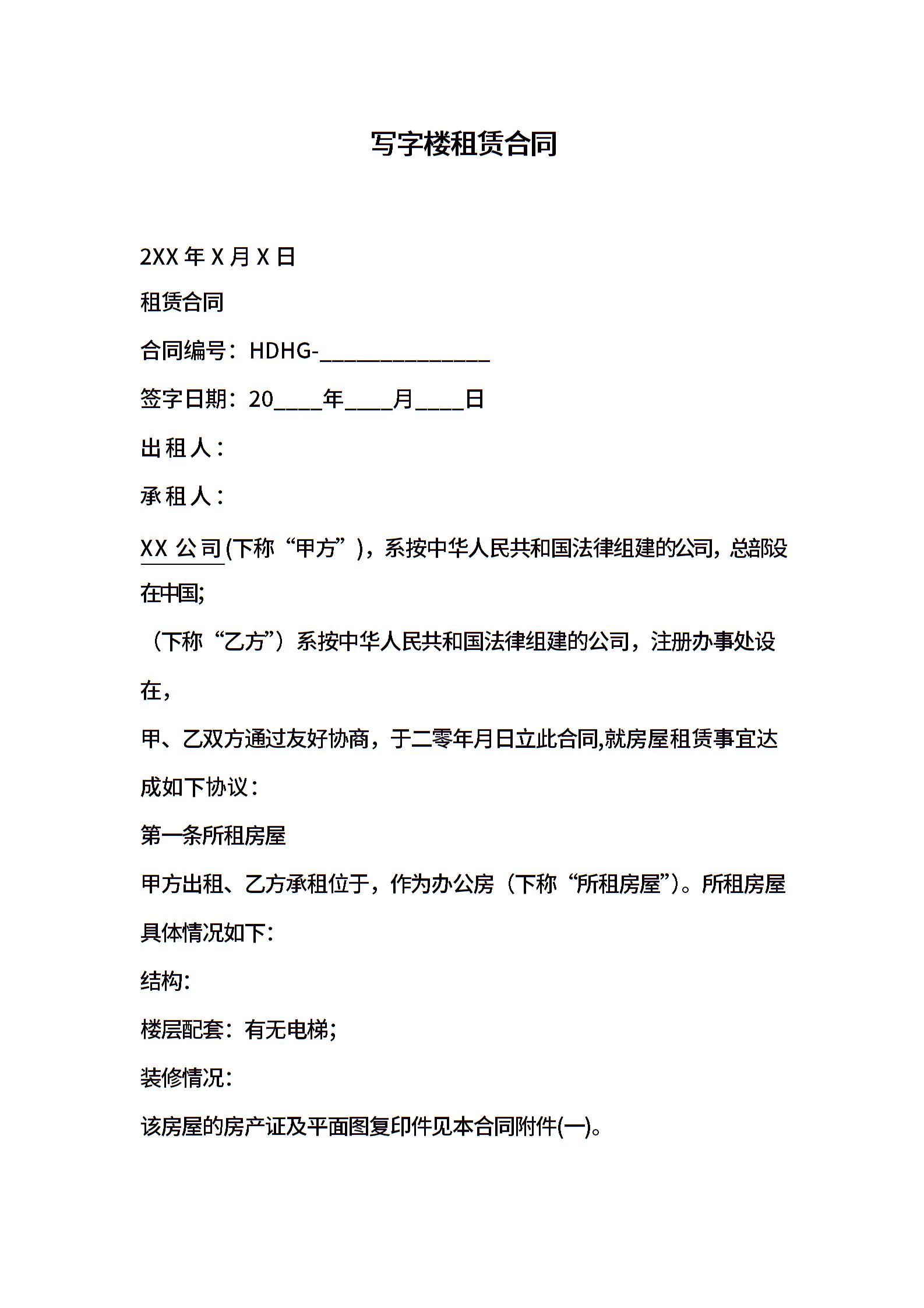 写字楼租赁合同-20XX