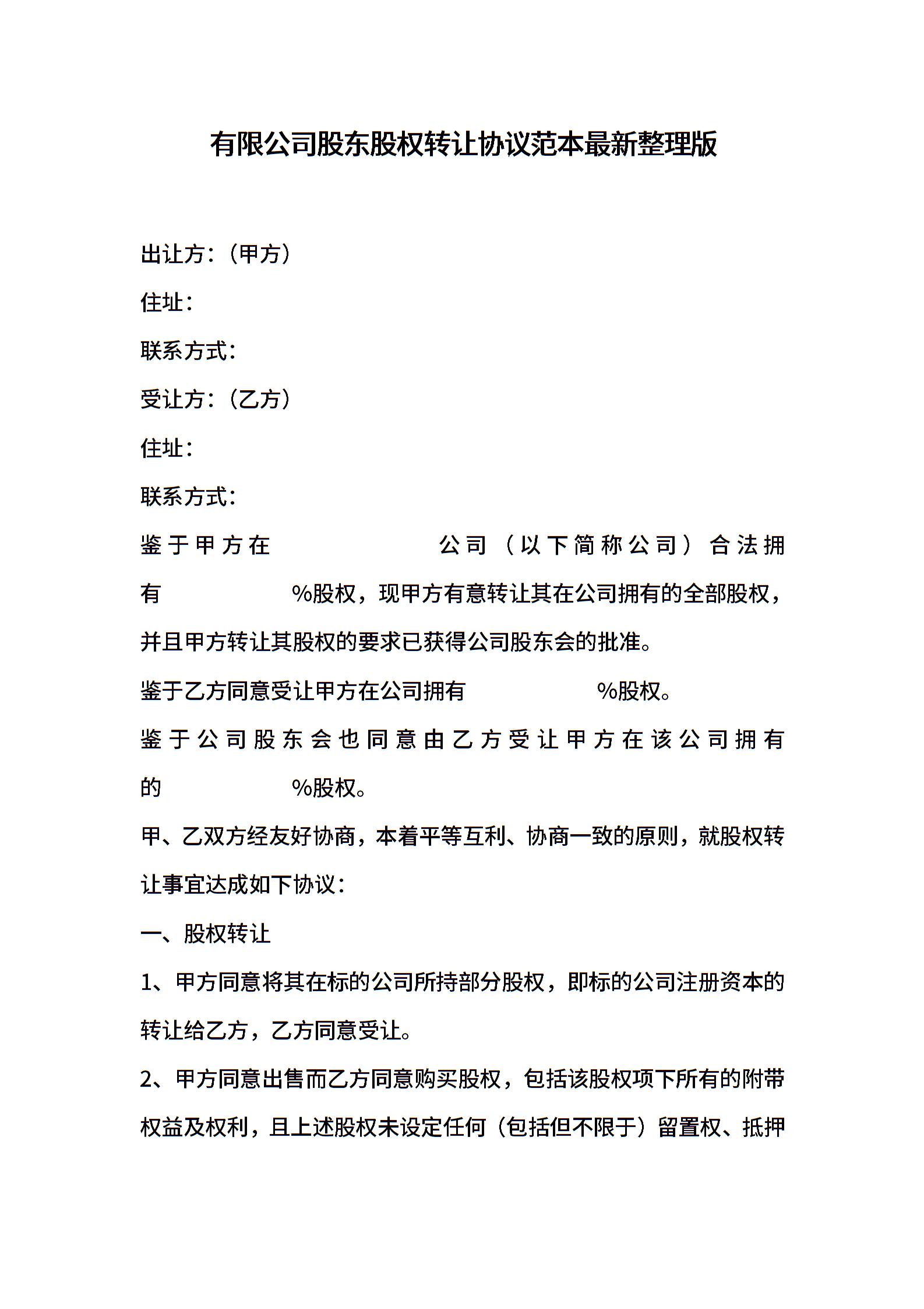 当前位置:量子办公 > 合同模板 > 股权转让协议 >