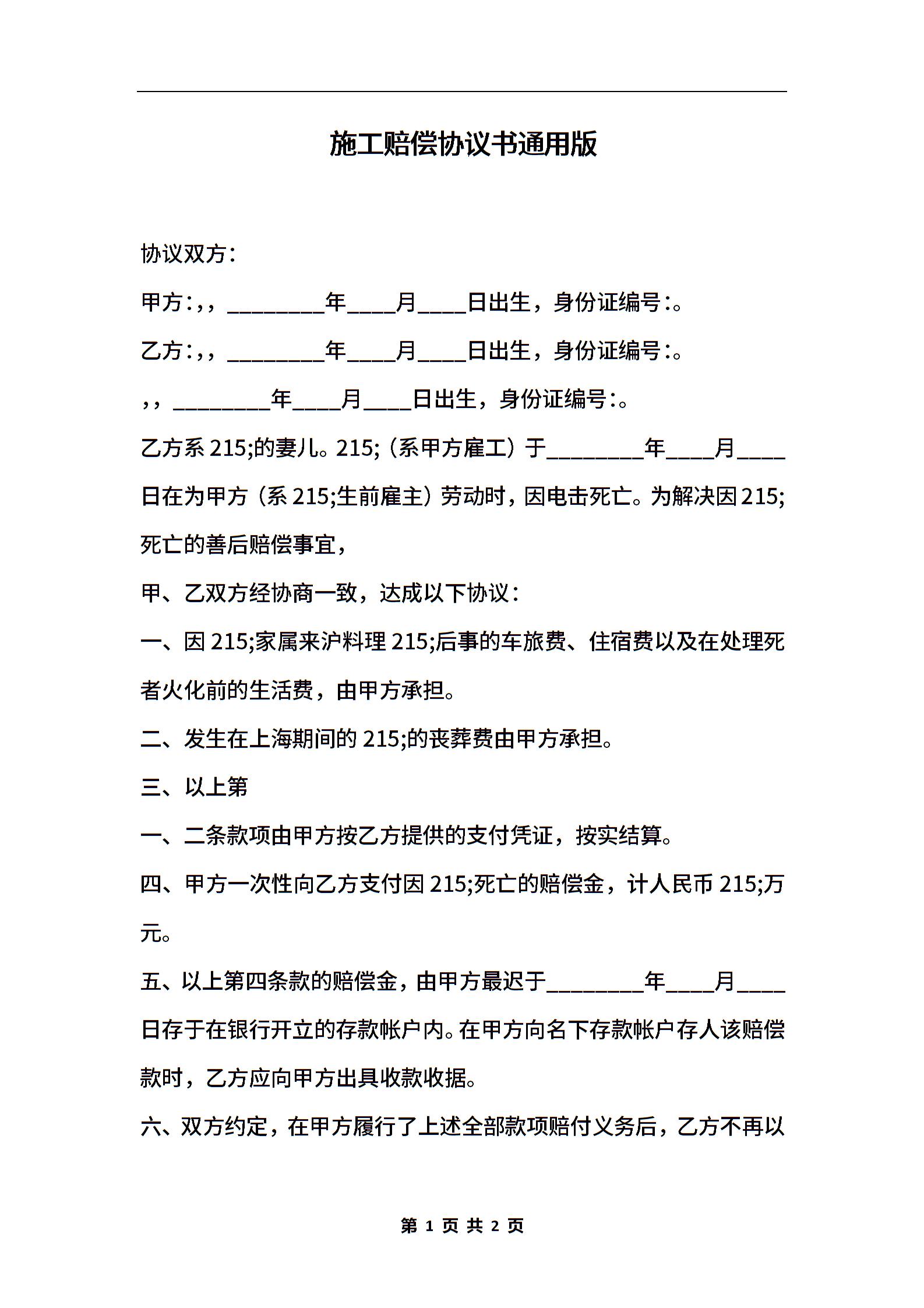 当前位置:量子办公 > 合同模板 > 赔偿协议 >