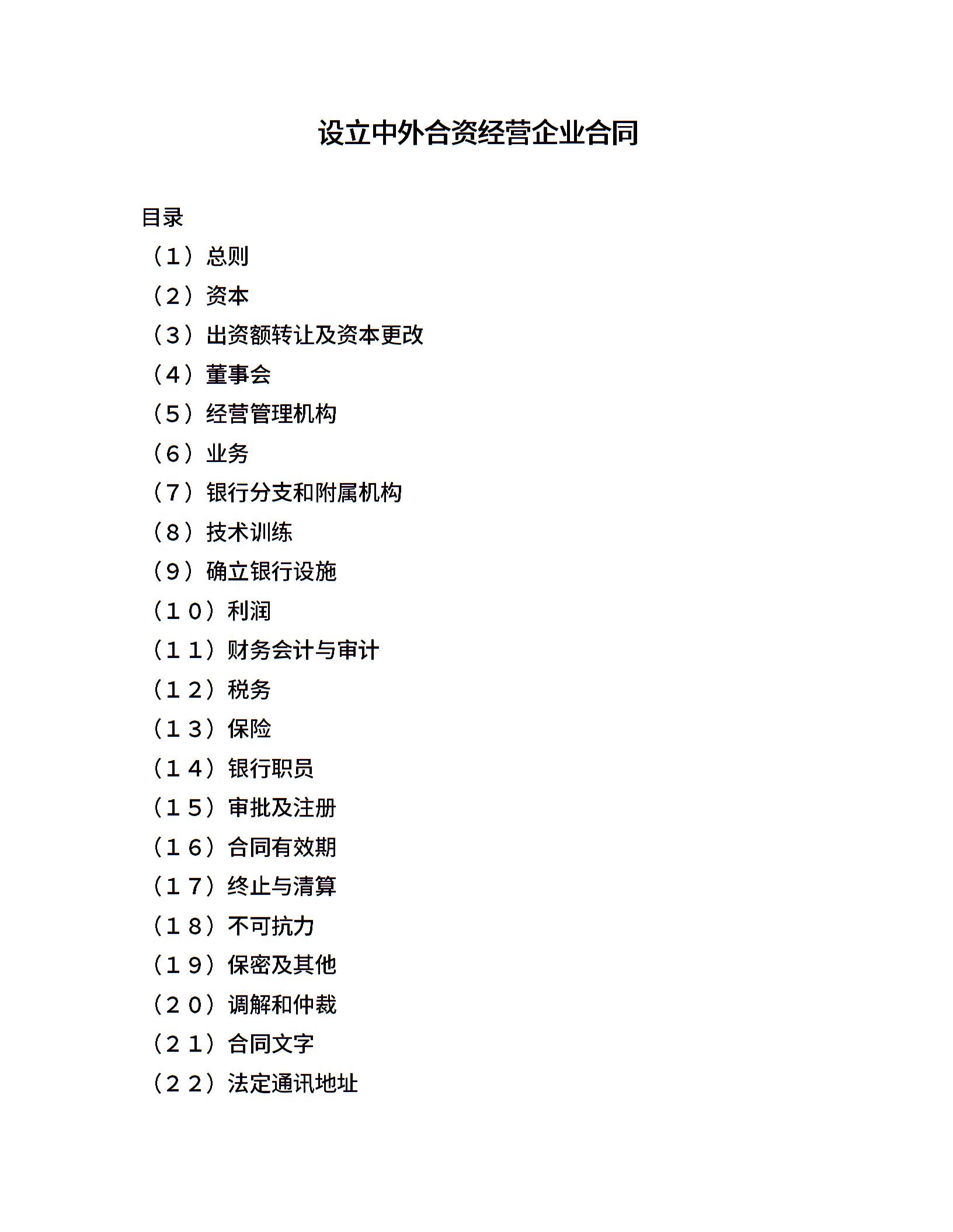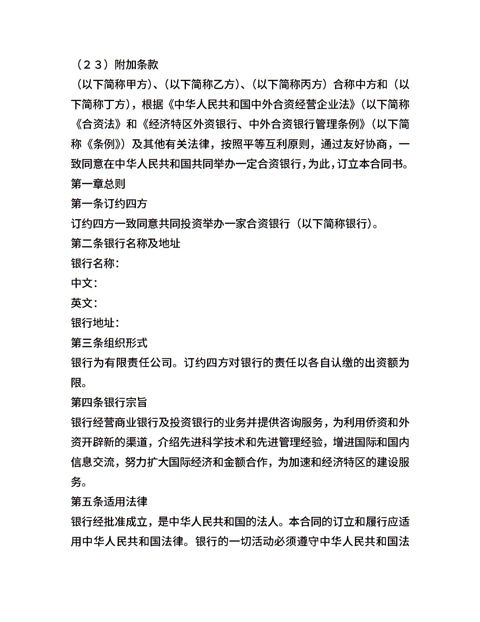 设立中外合资经营企业合同(金融4)