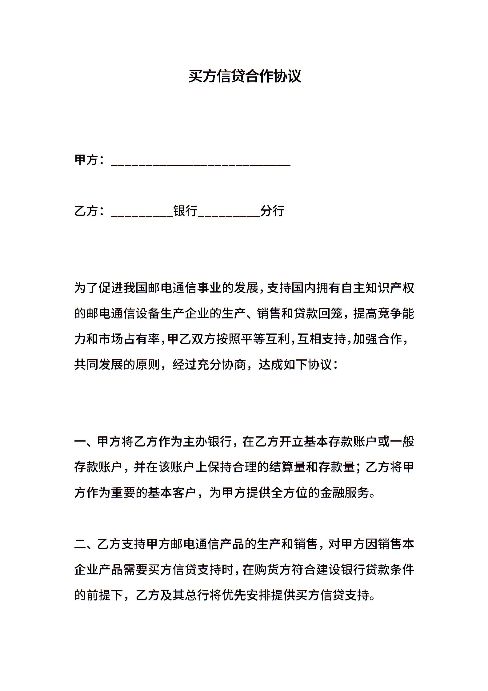 买方信贷合作协议