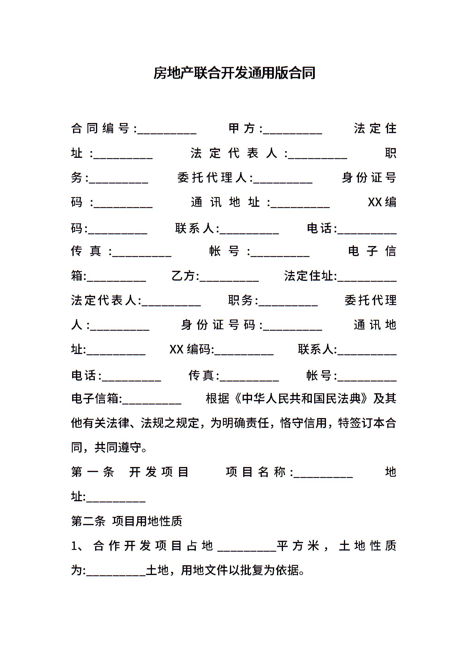 房地产联合开发通用版合同