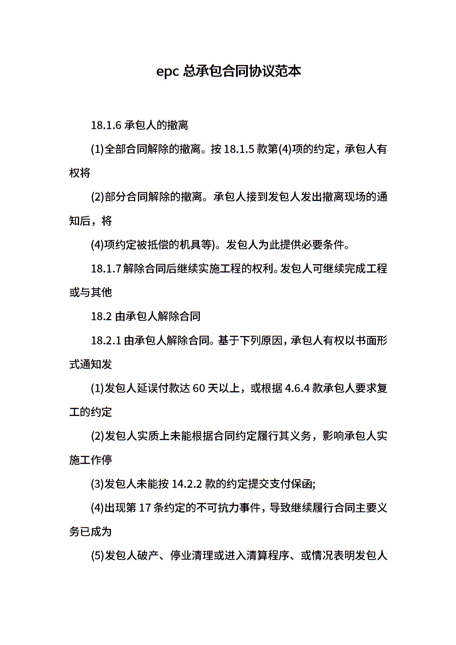 epc总承包合同协议范本