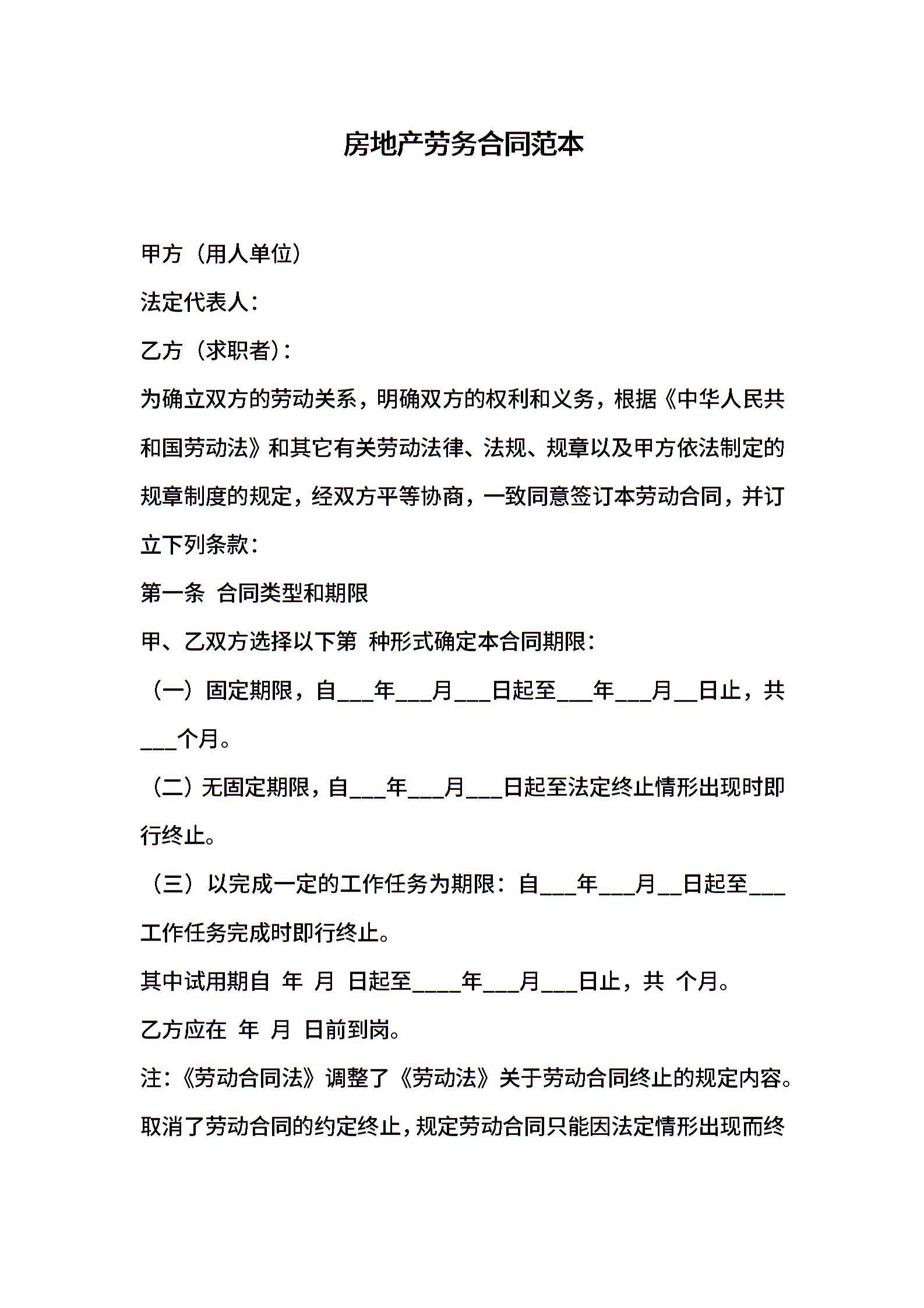 房地产劳务合同范本