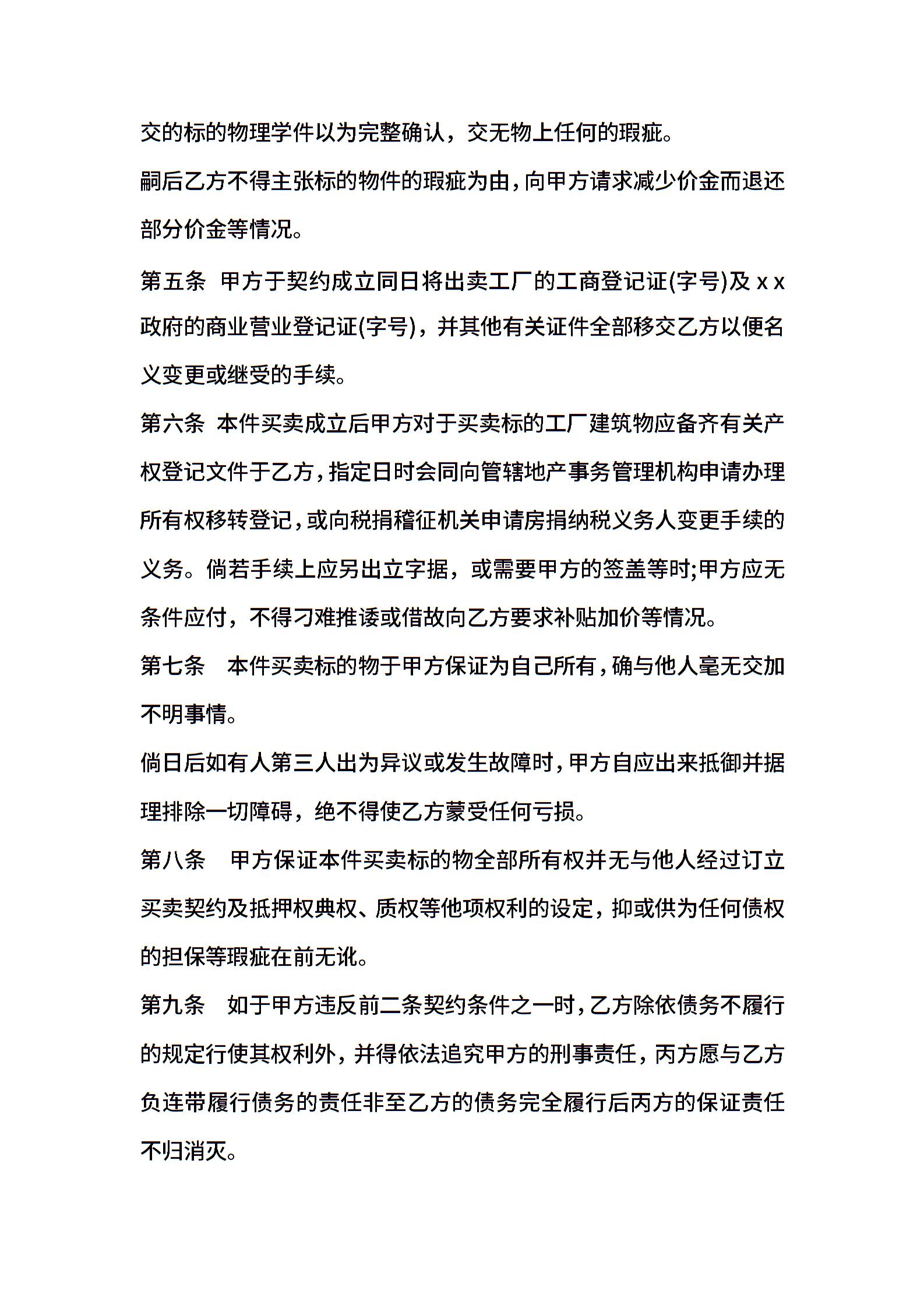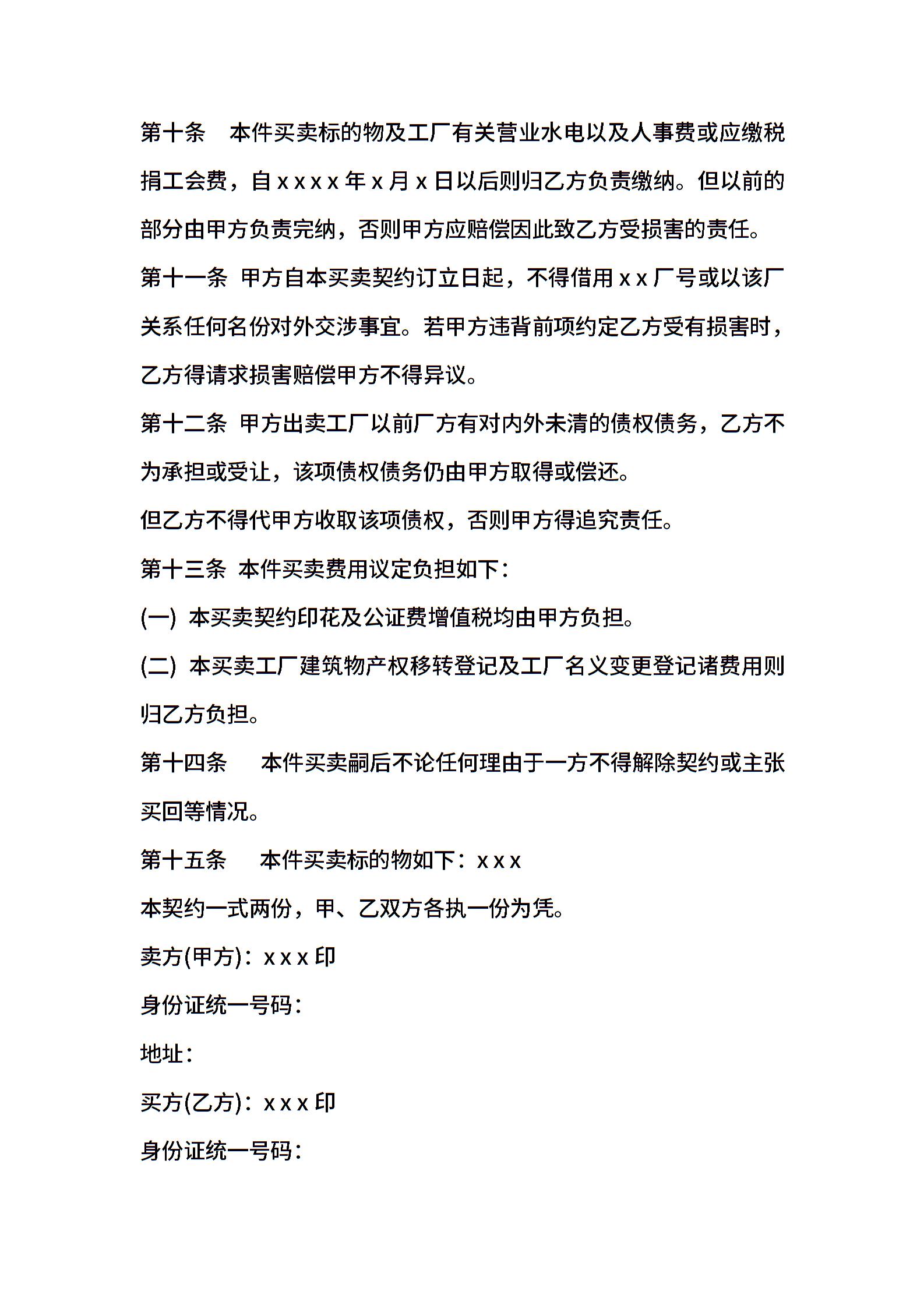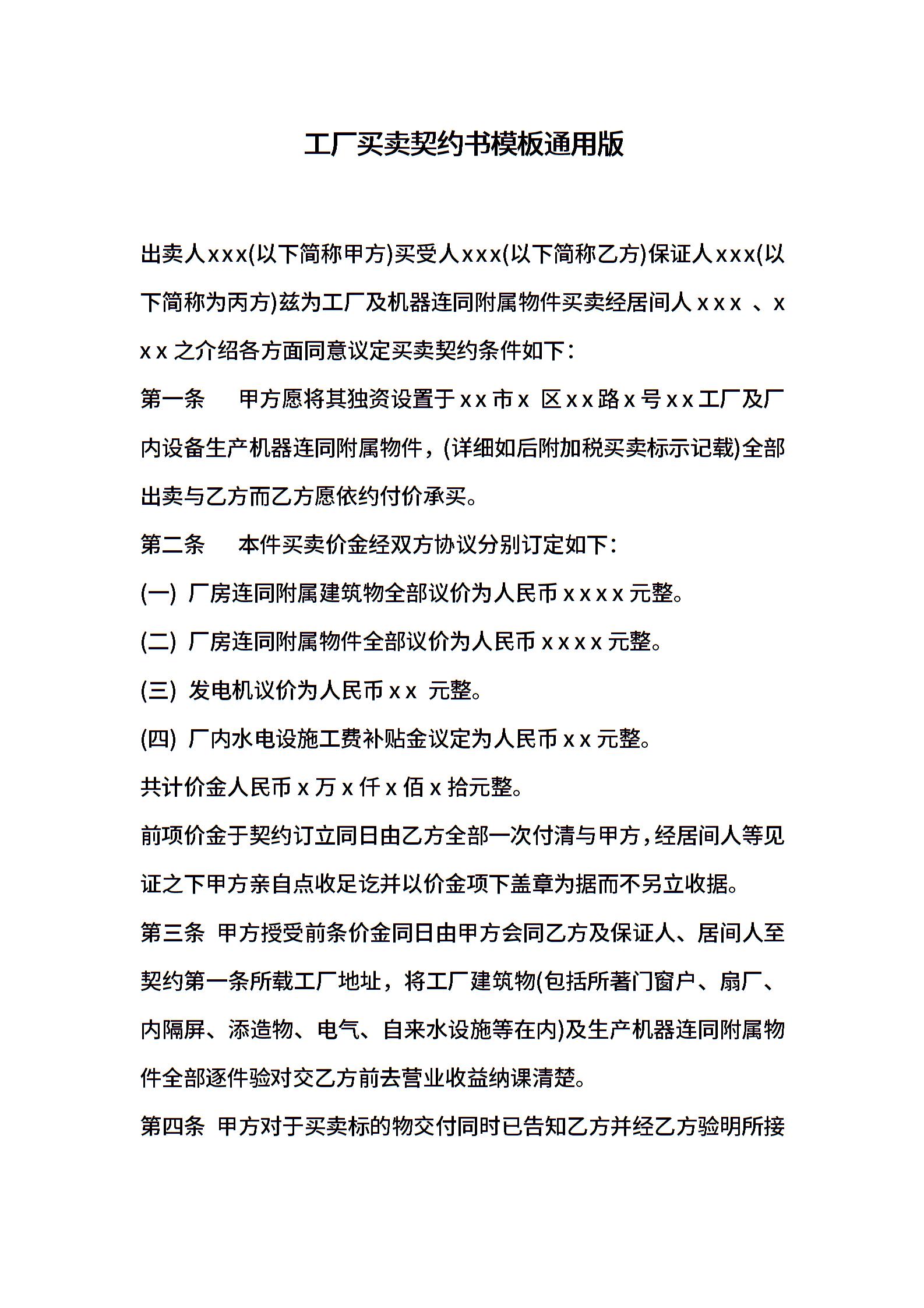 工厂买卖契约书模板通用版