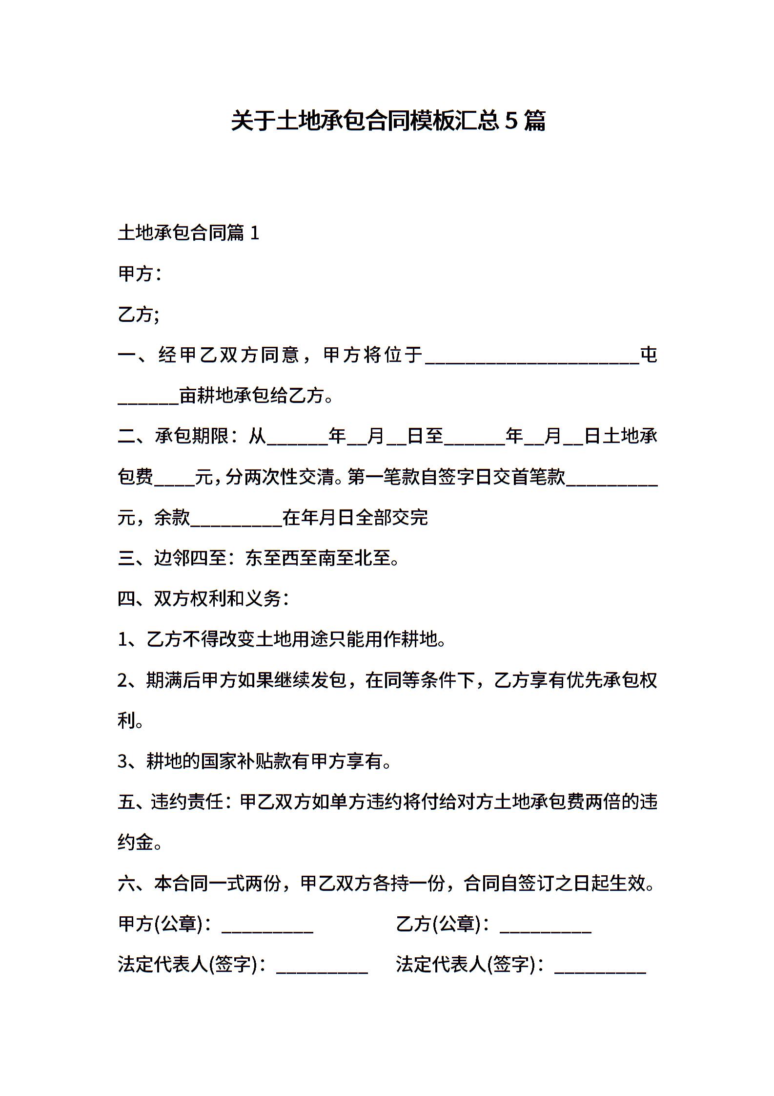 关于土地承包合同模板汇总5篇