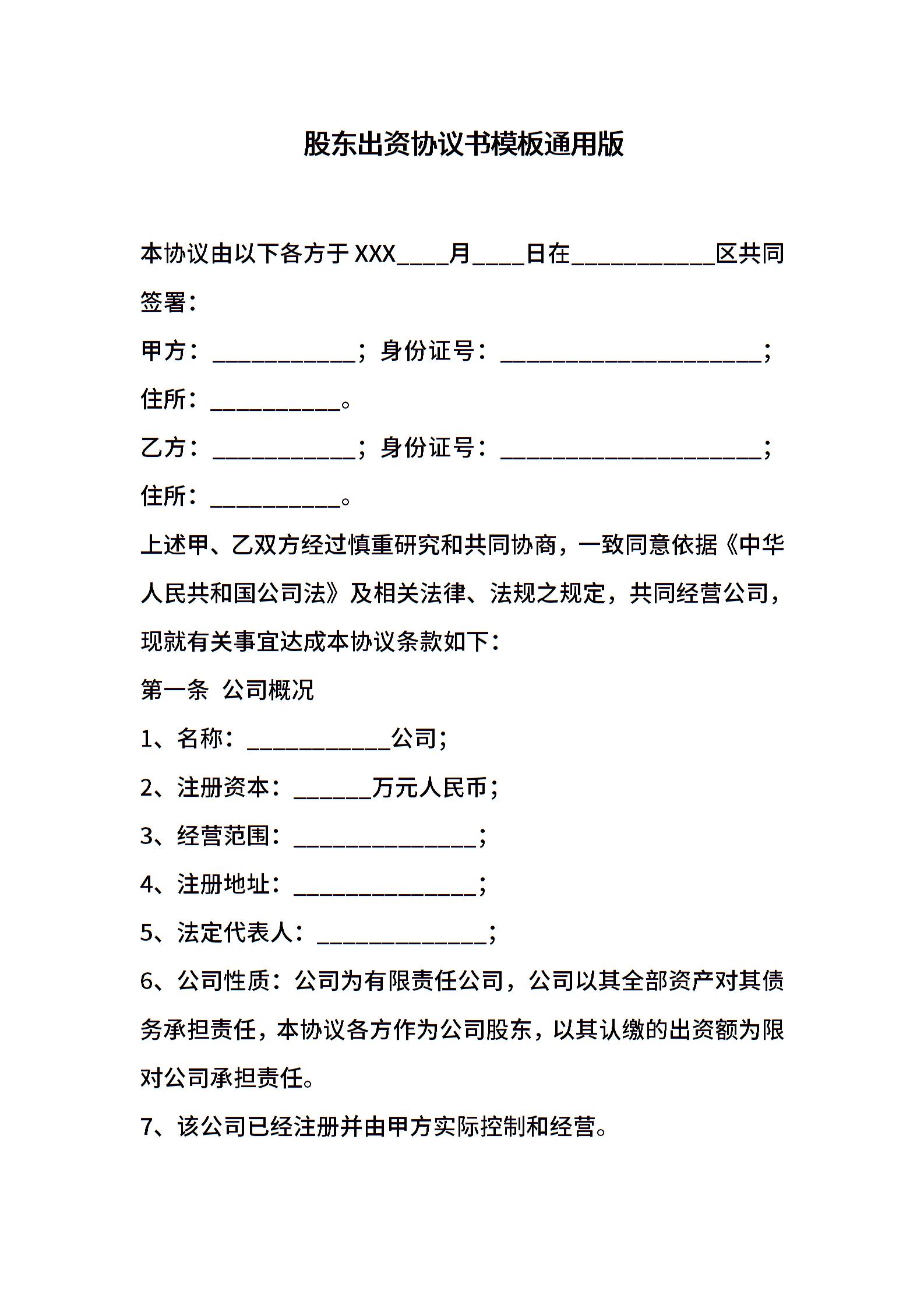 当前位置:量子办公 > 合同模板 > 出资协议 >