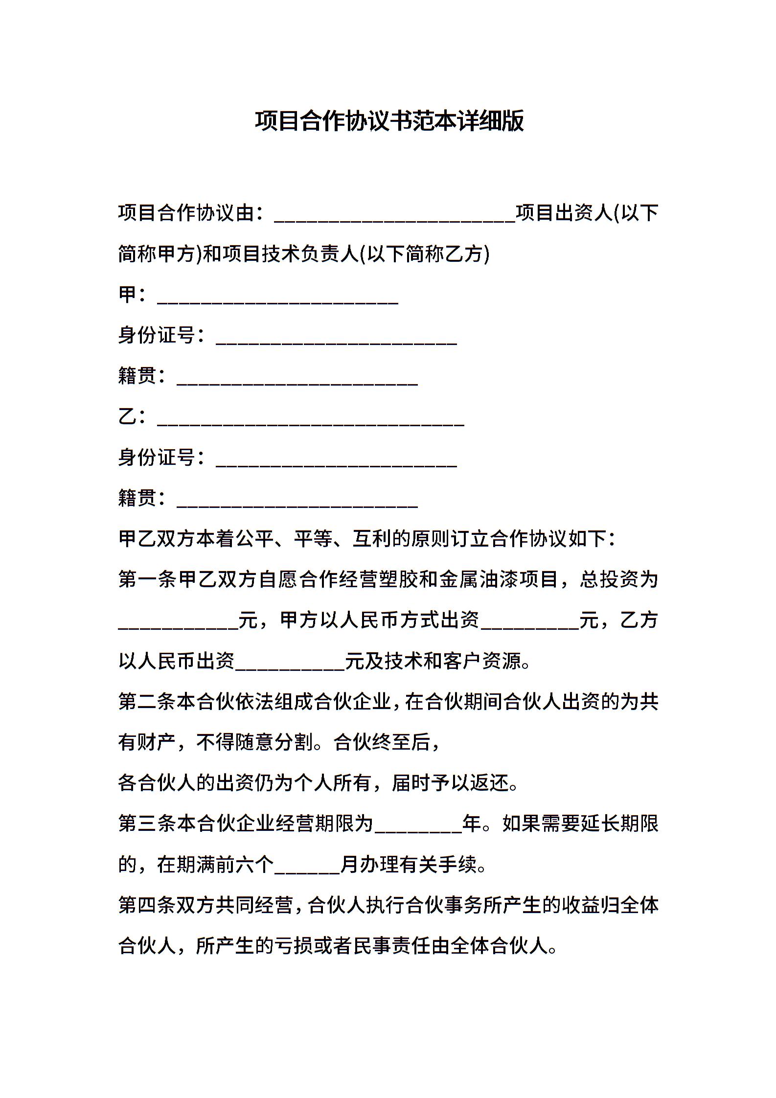 项目合作协议书范本详细版