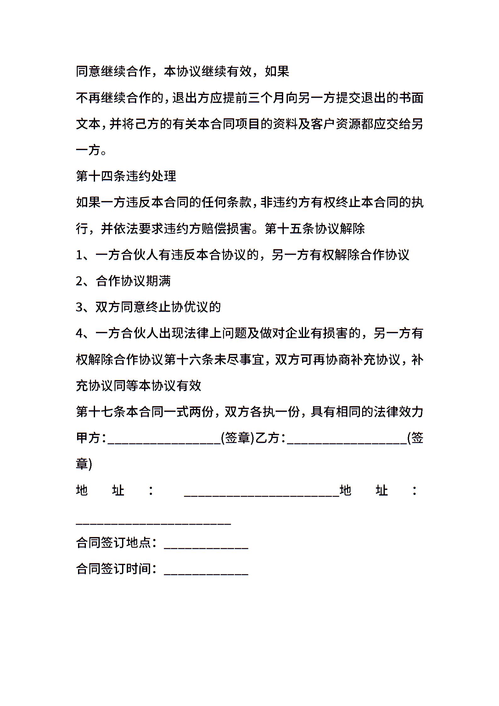 当前位置:量子办公 > 合同模板 > 合作合同 >