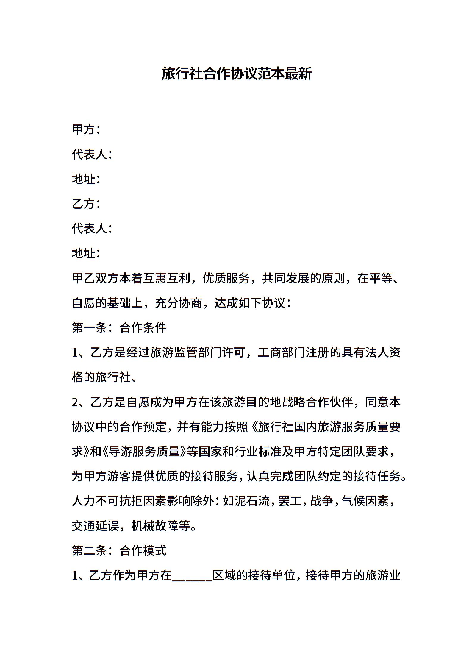 旅行社合作协议范本最新