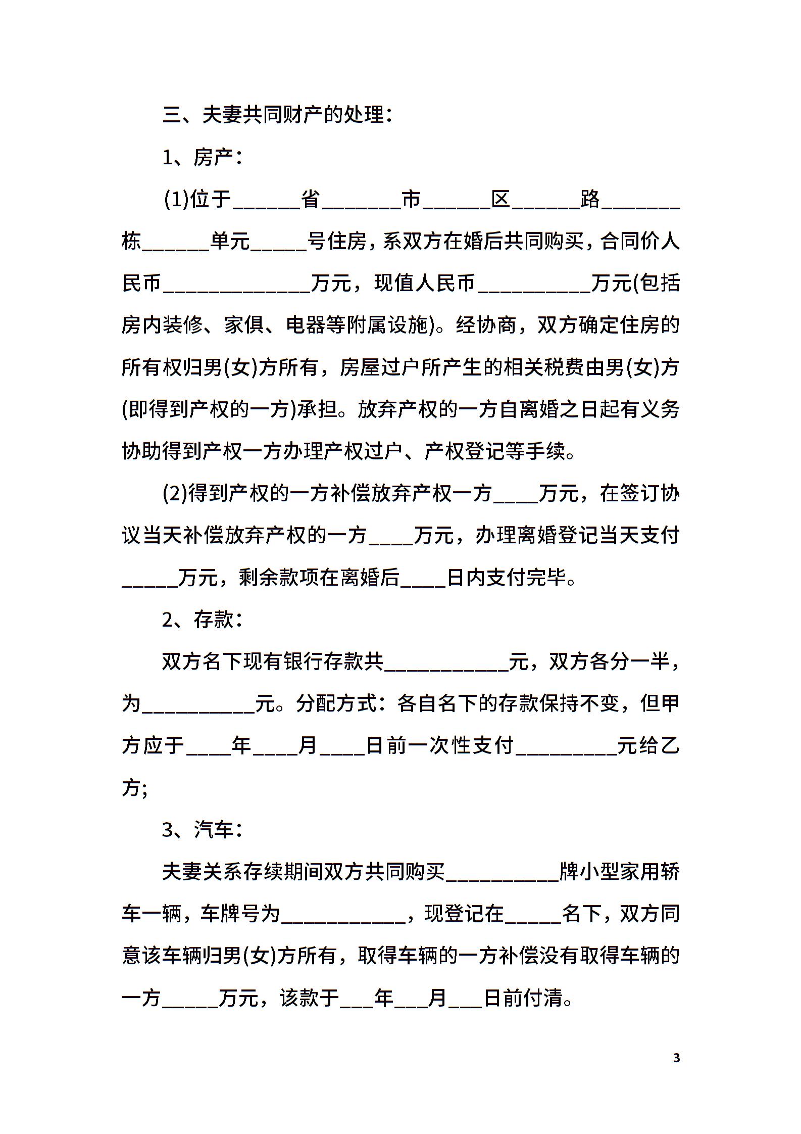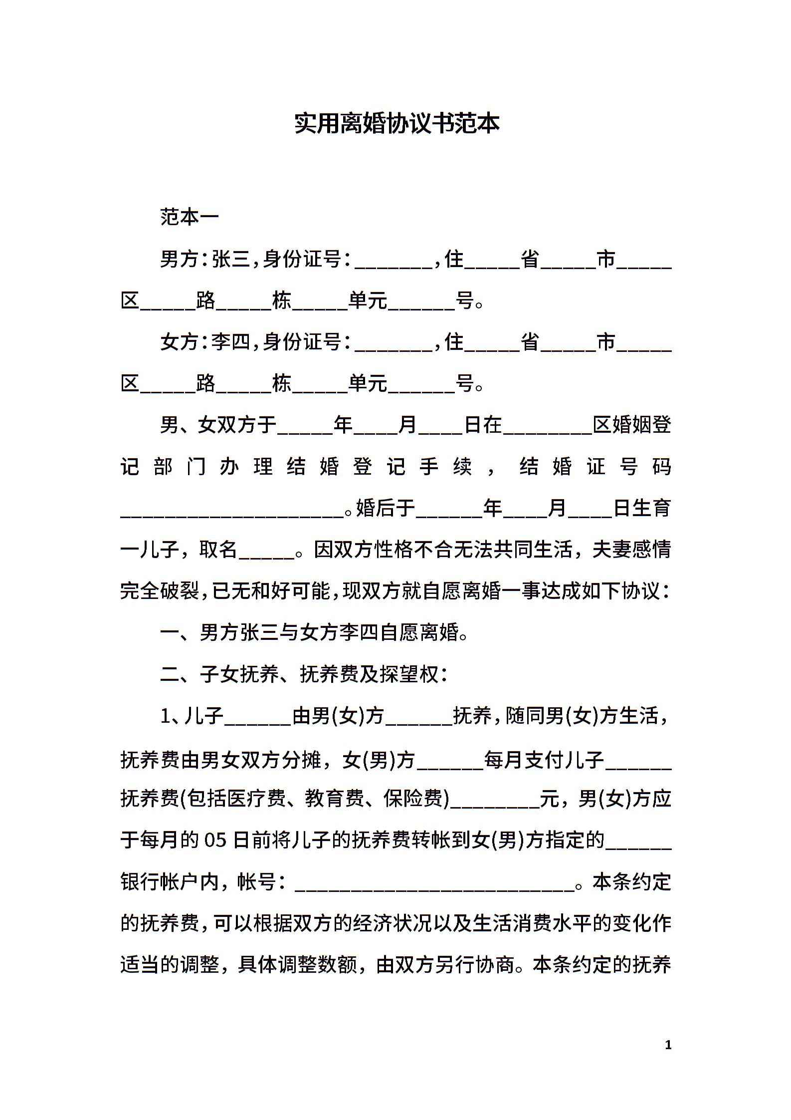 实用离婚协议书范本_1