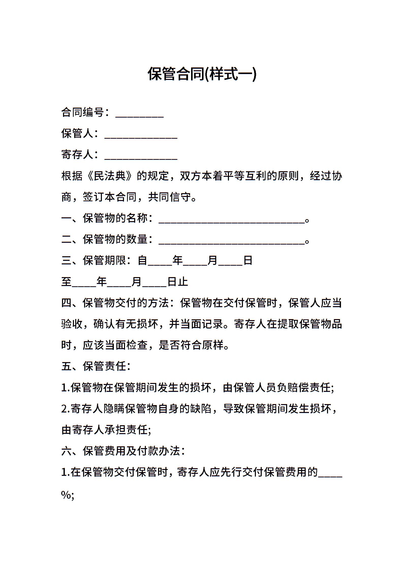 当前位置:量子办公 > 合同模板 > 保管合同 >