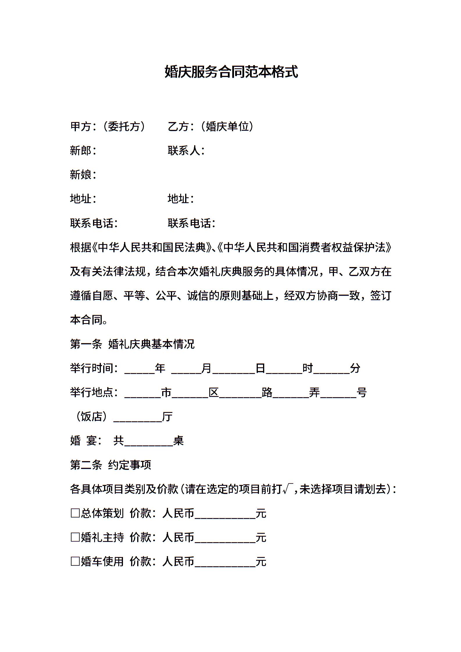 婚庆服务合同范本格式