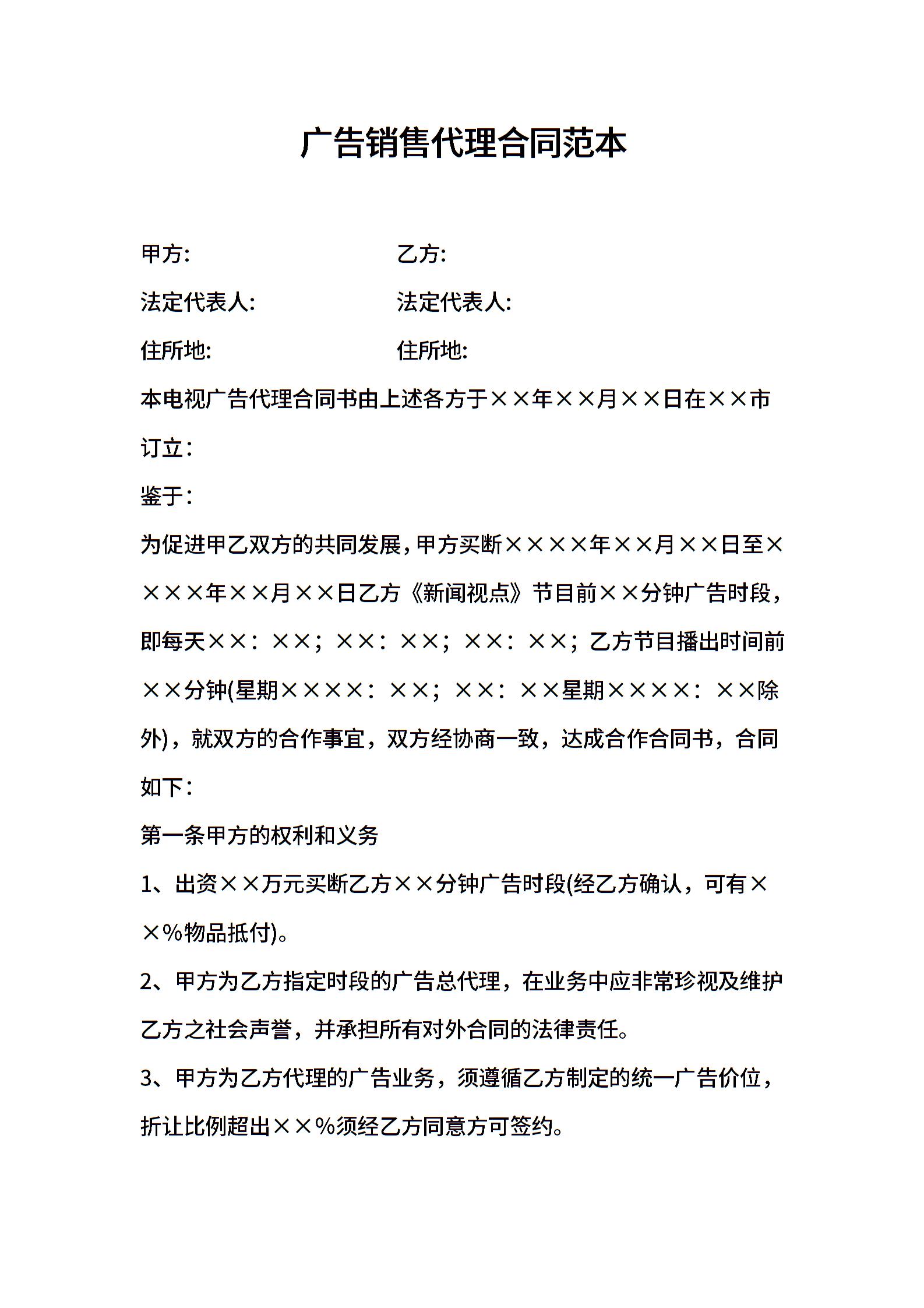 广告销售代理合同范本 (2)