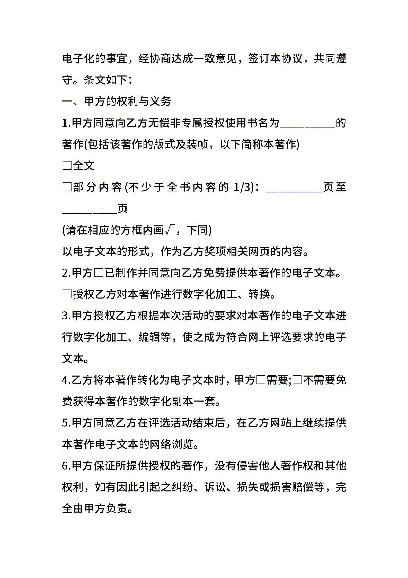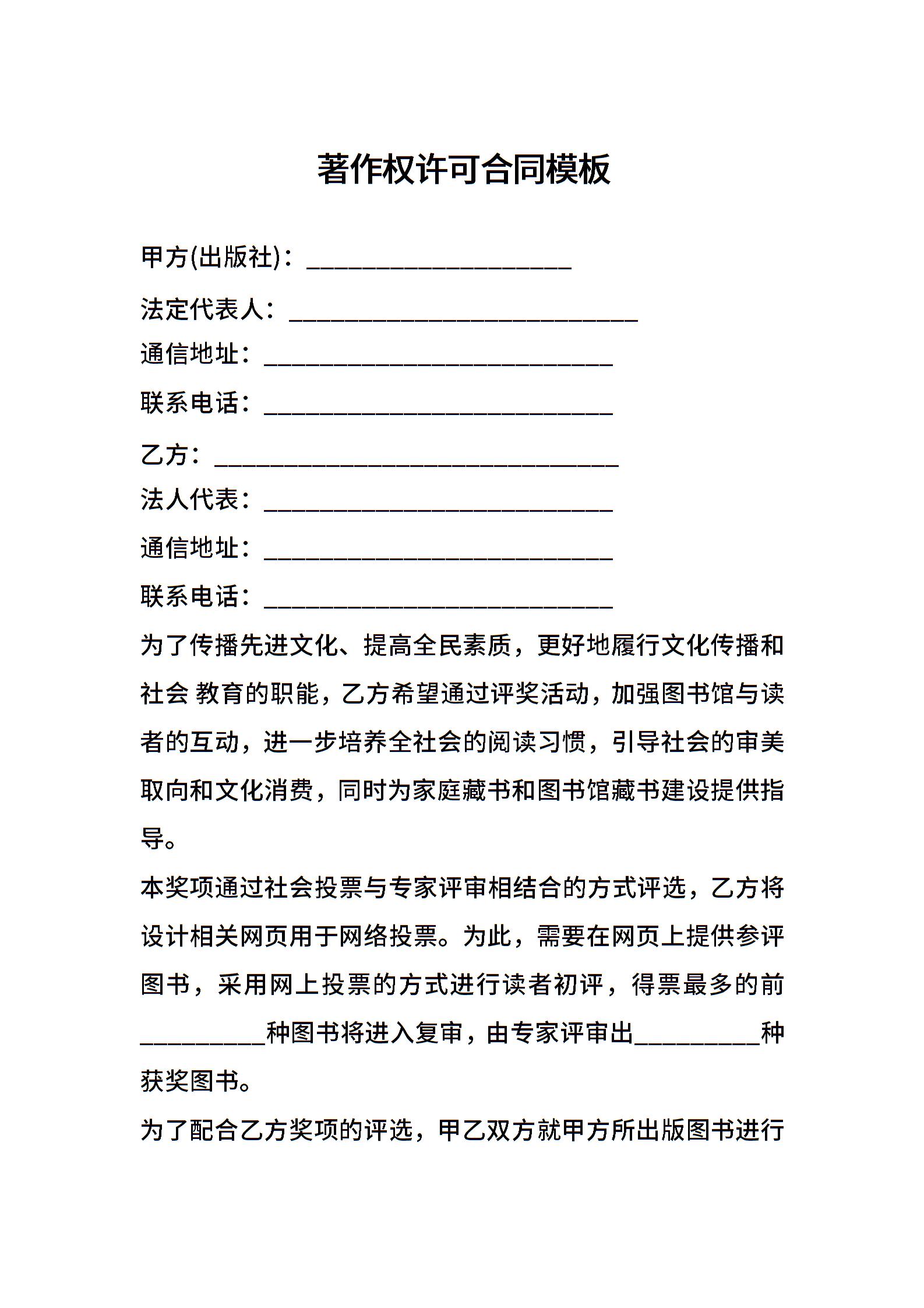 著作权许可合同模板
