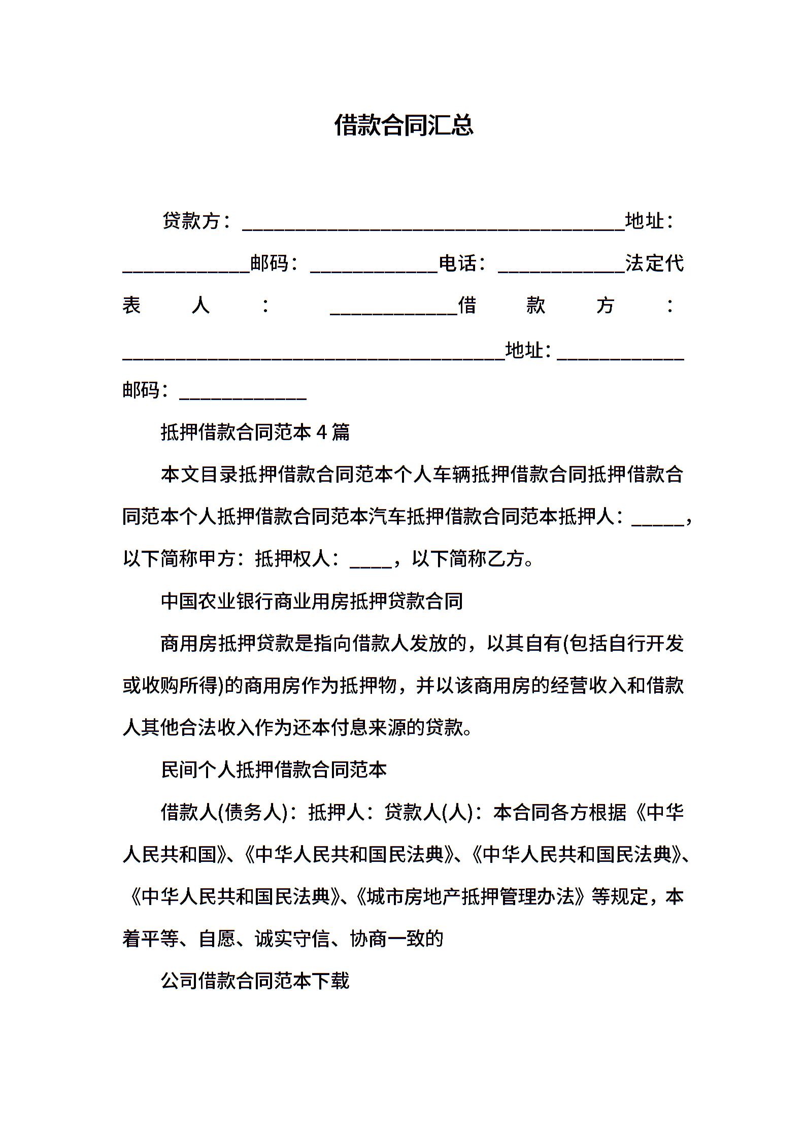 借款合同汇总