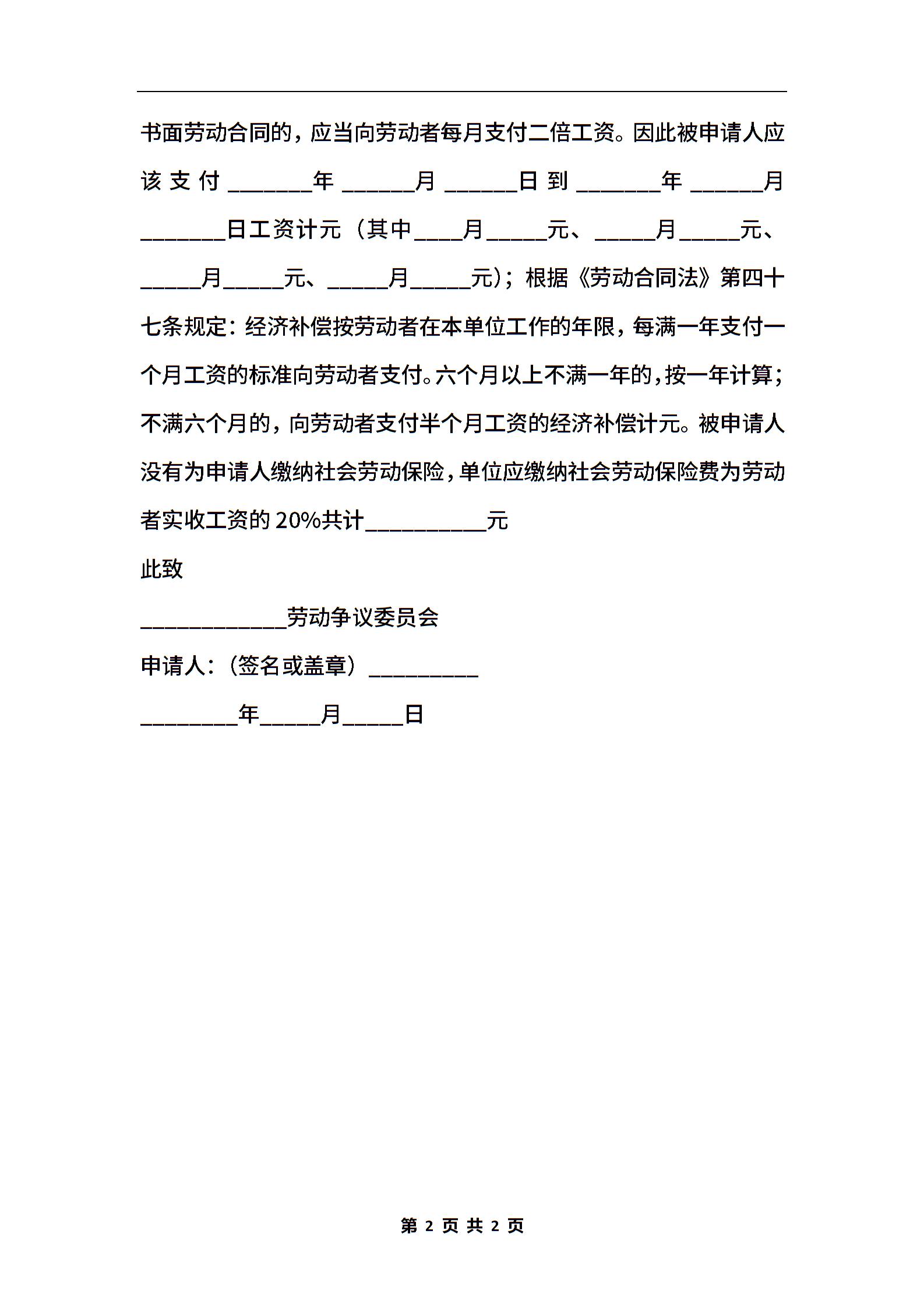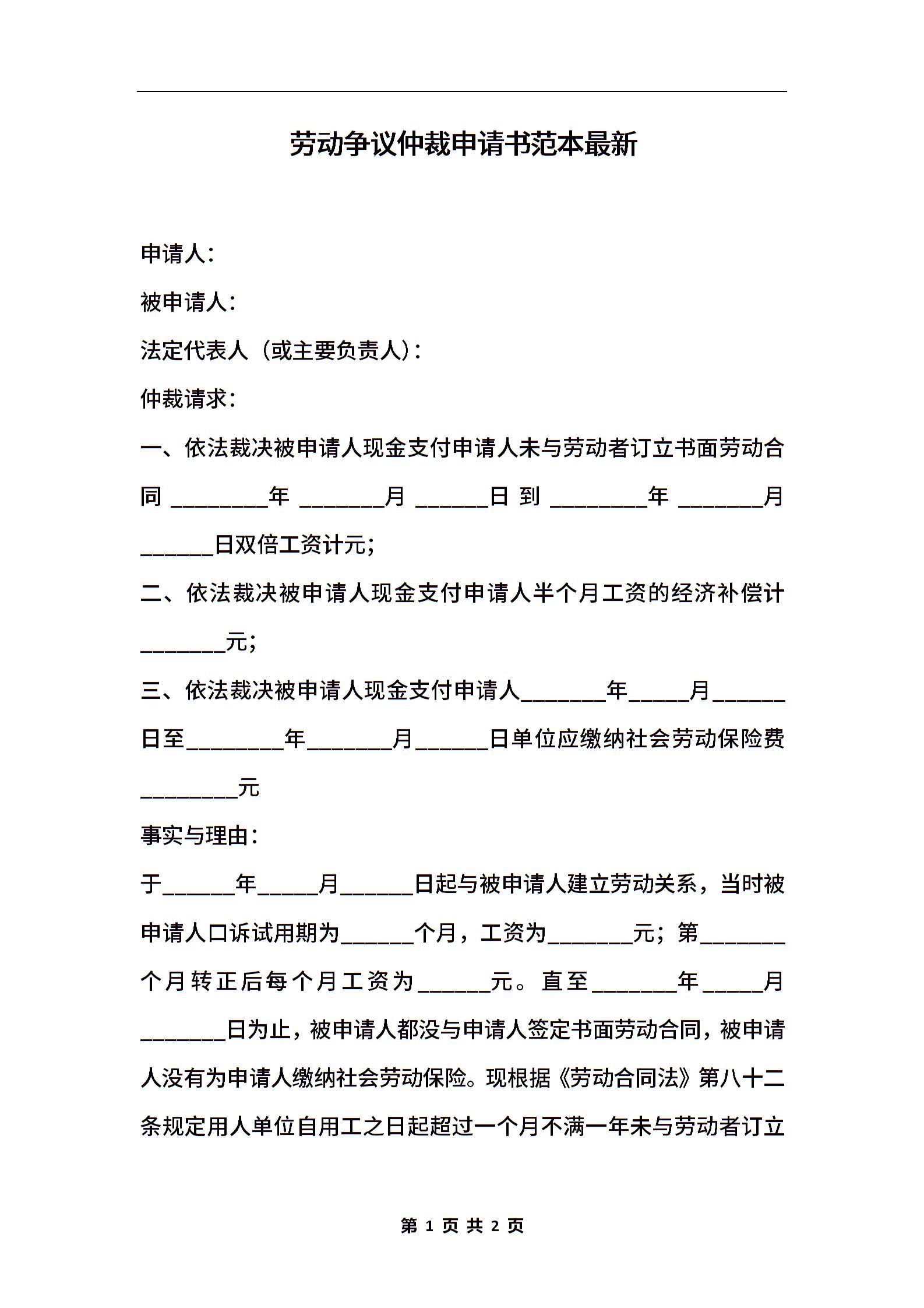 劳动争议仲裁申请书范本最新