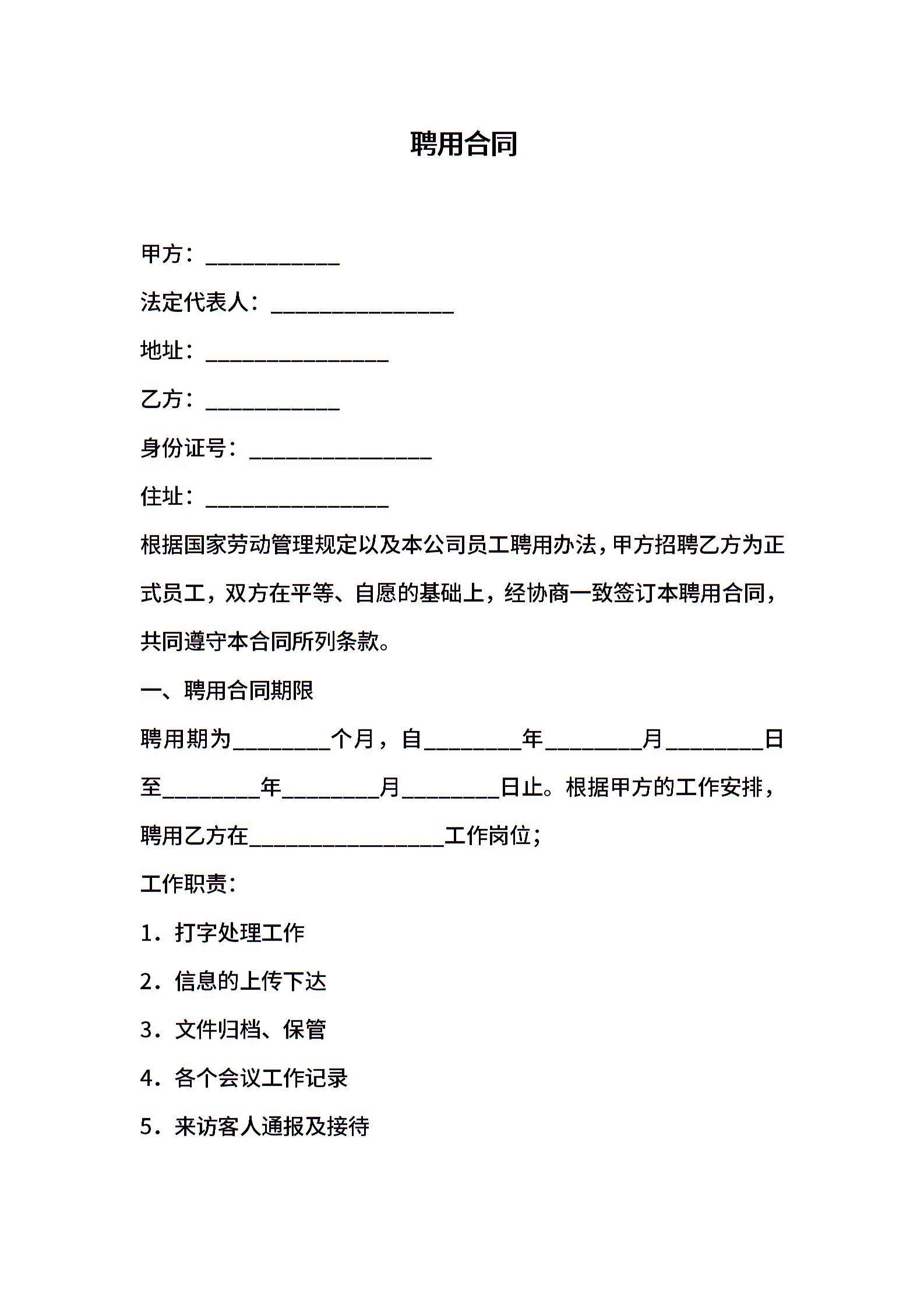 当前位置:量子办公 > 合同模板 > 聘用合同 >