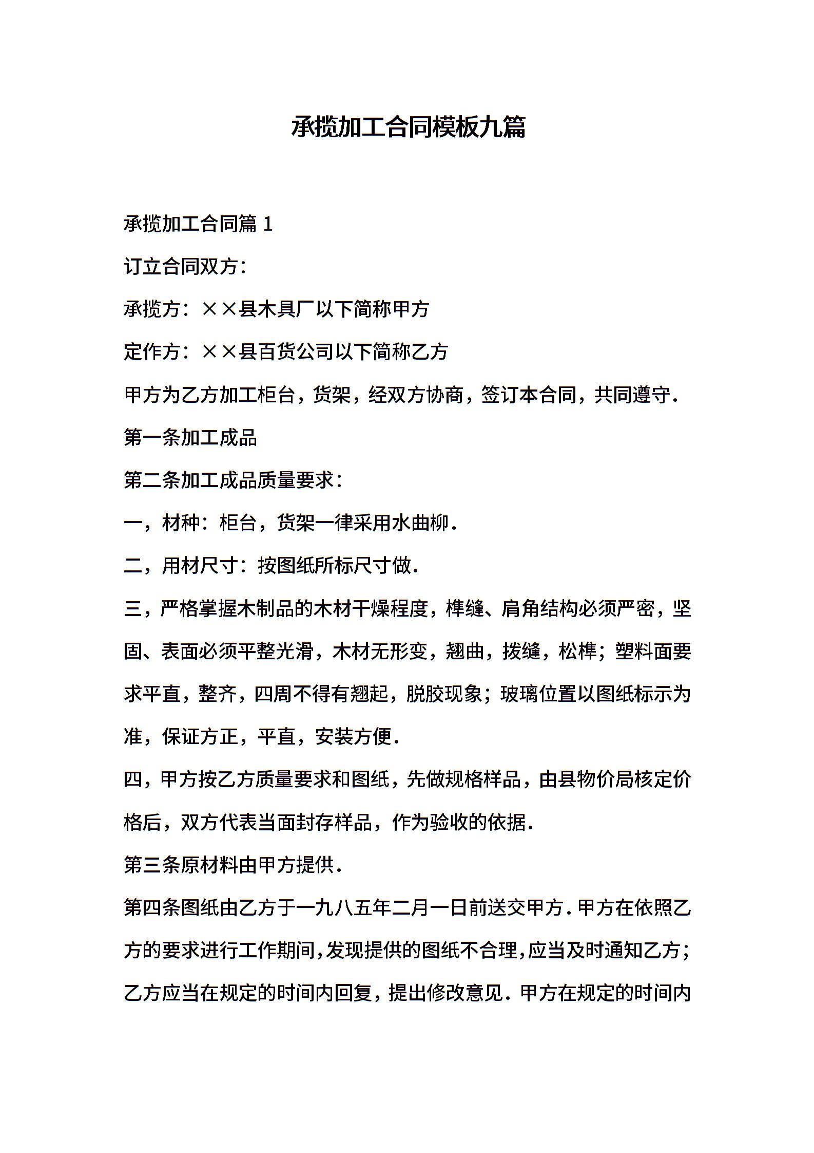 当前位置:量子办公 > 合同模板 > 加工合同 >