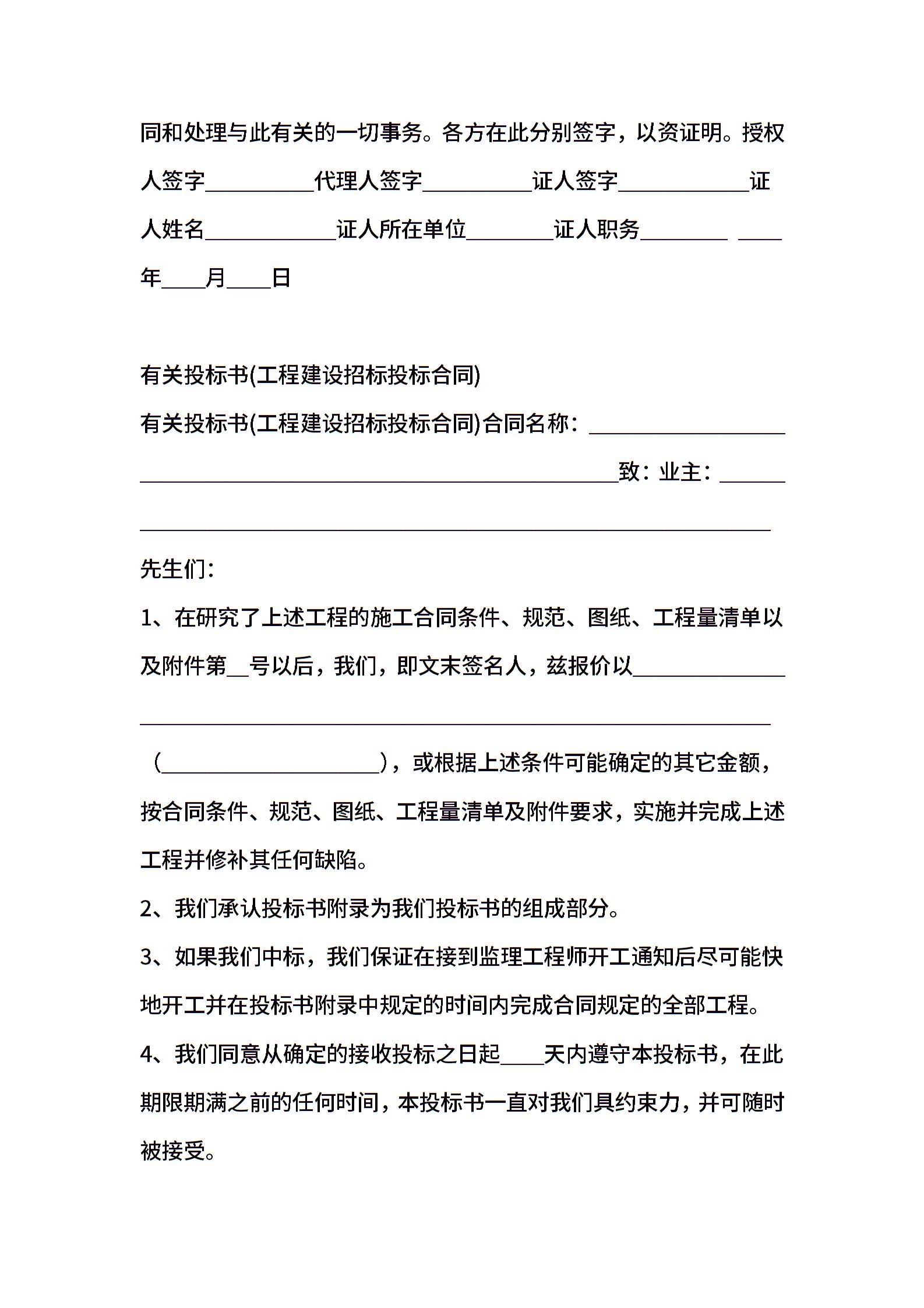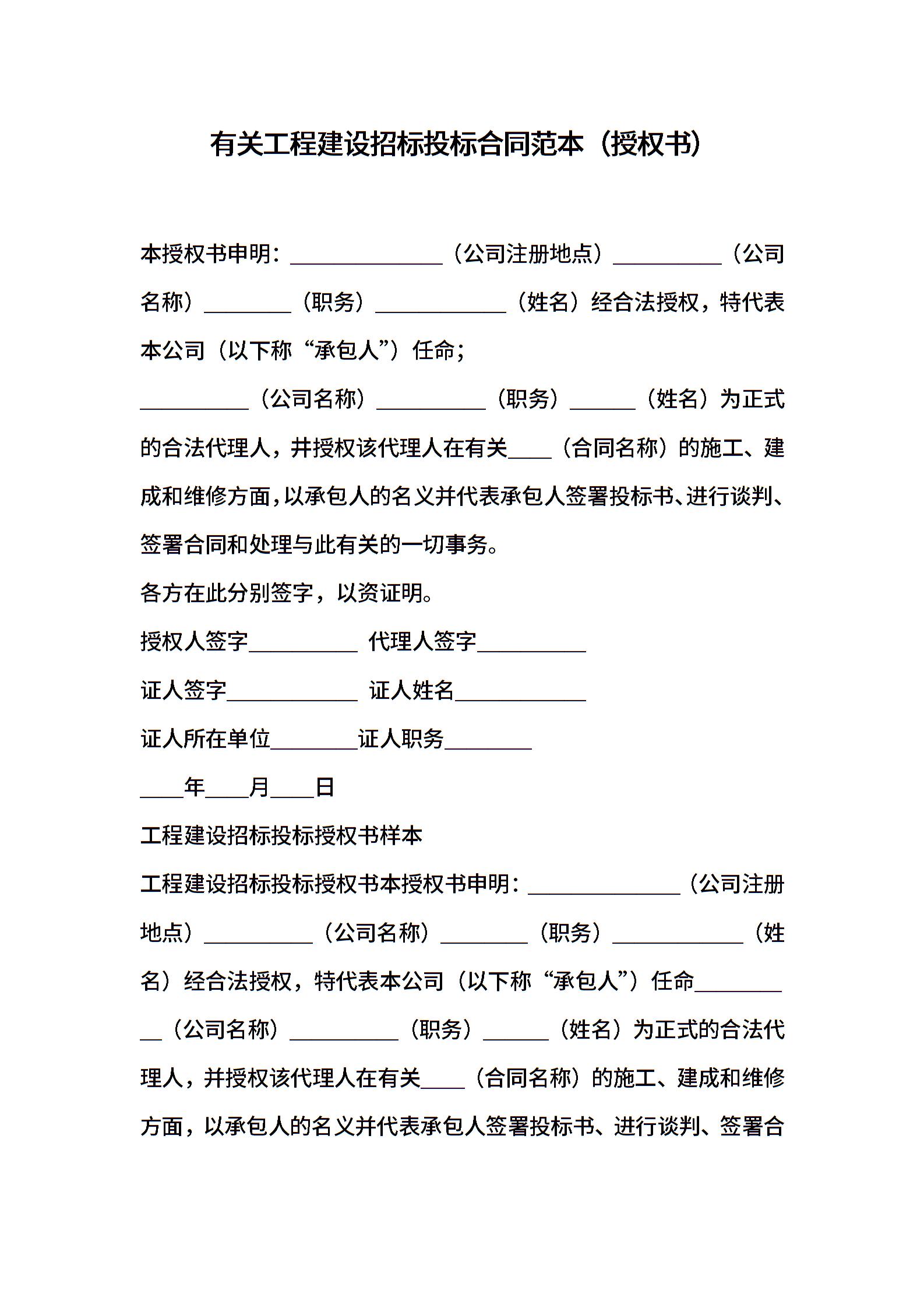 有关工程建设招标投标合同范本(授权书)
