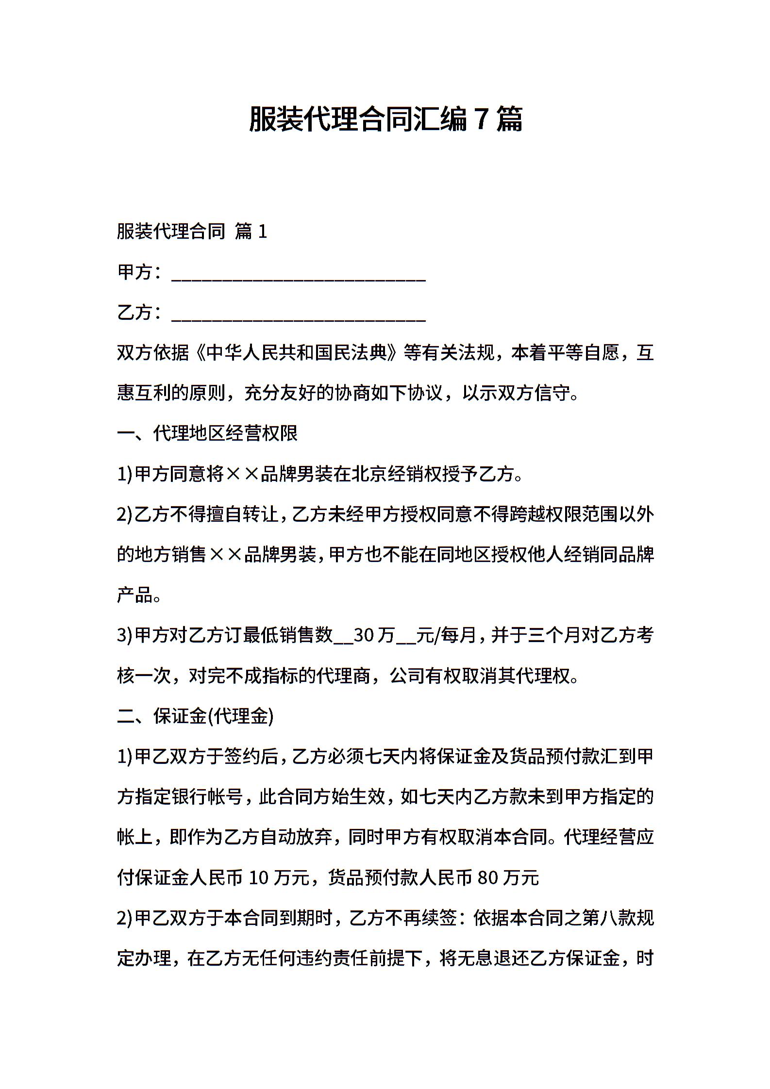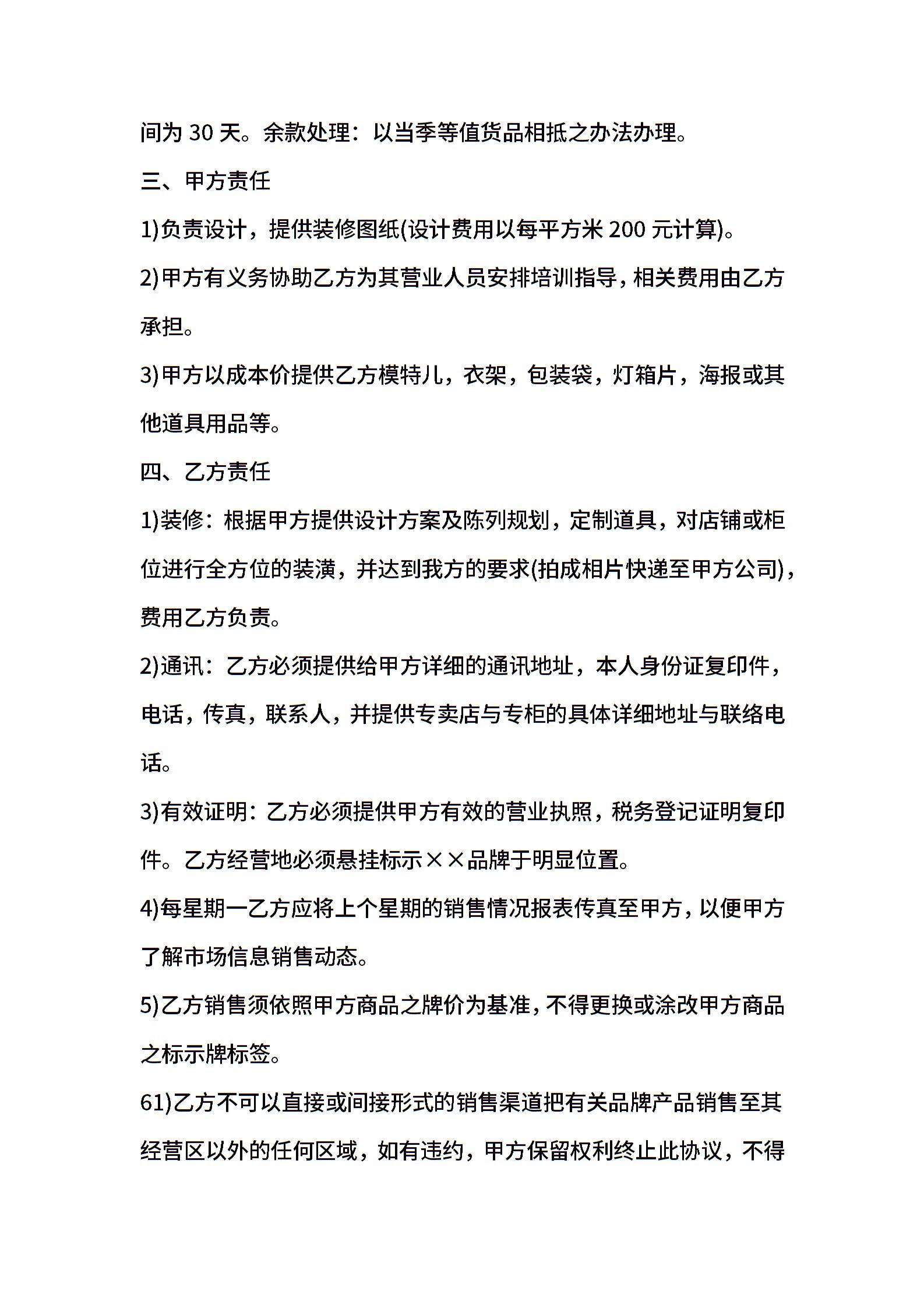 服装代理合同汇编7篇