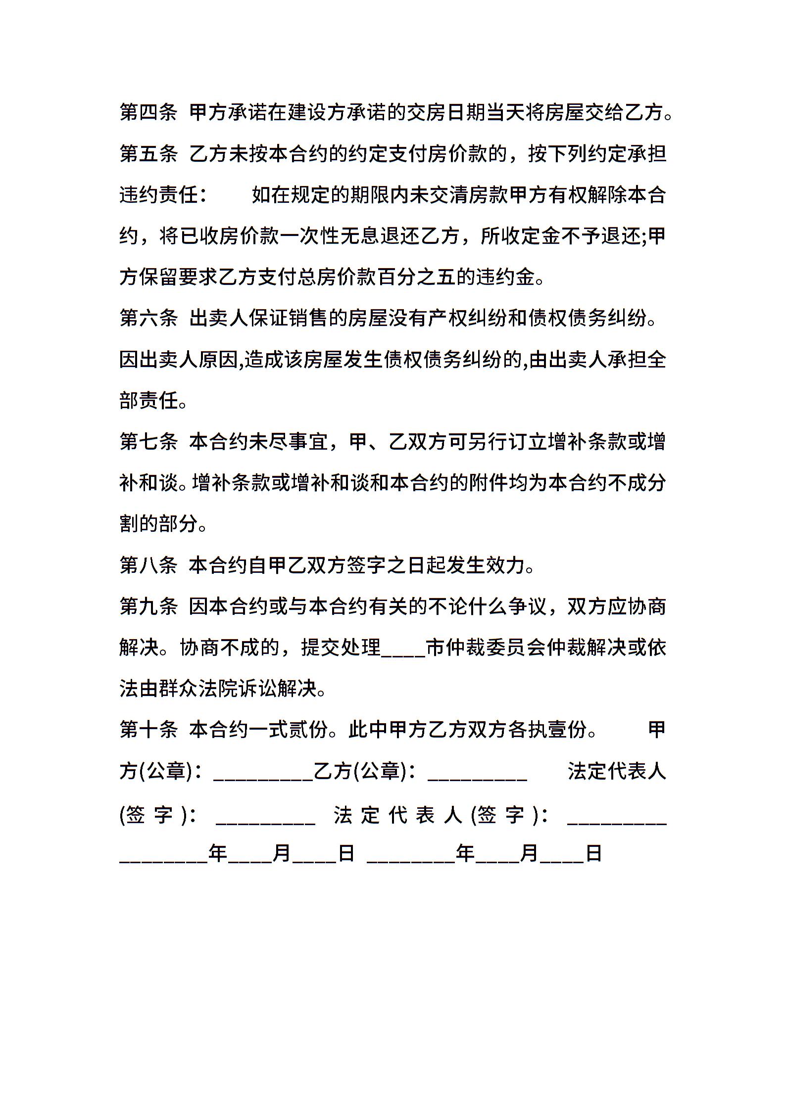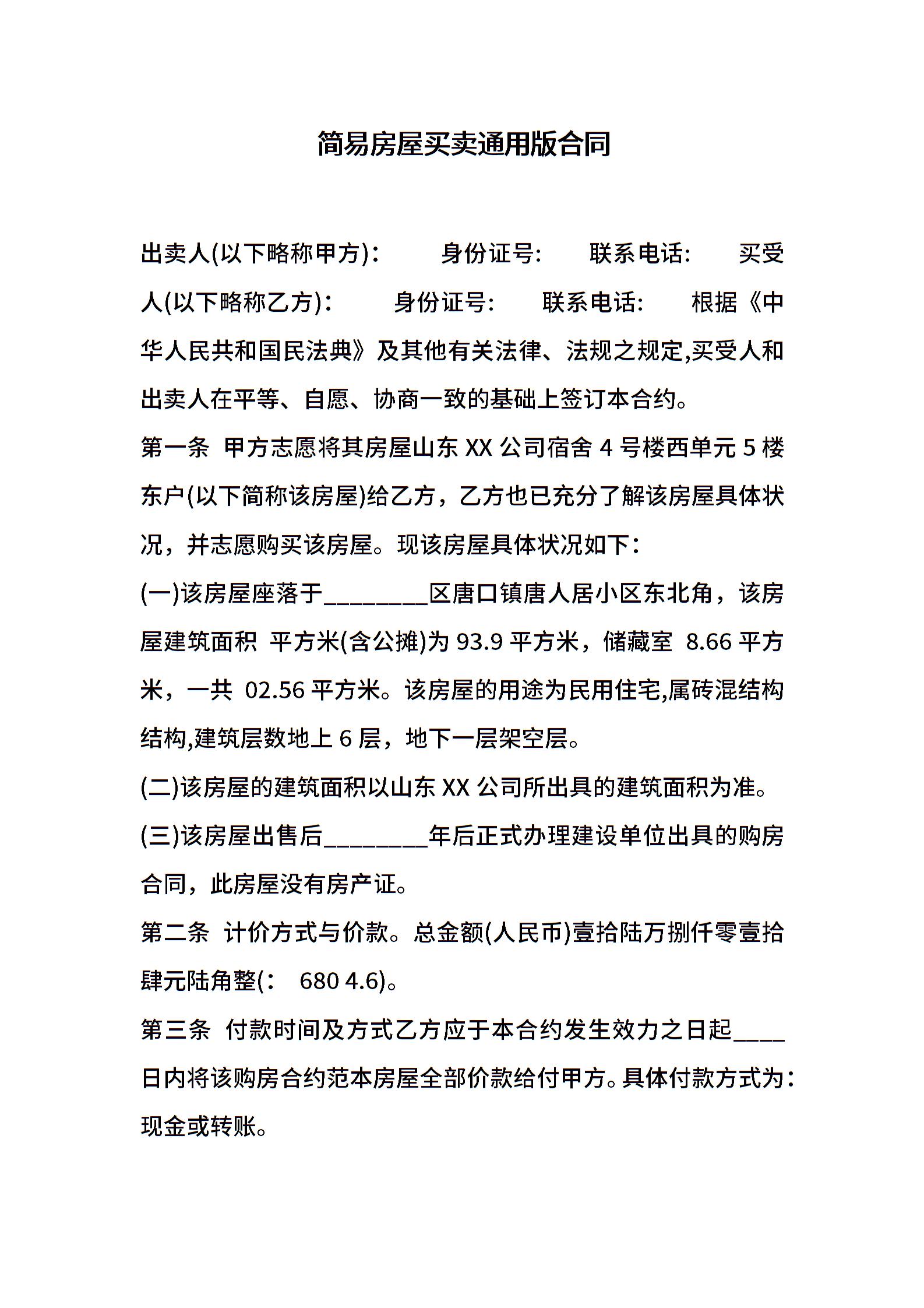 简易房屋买卖通用版合同