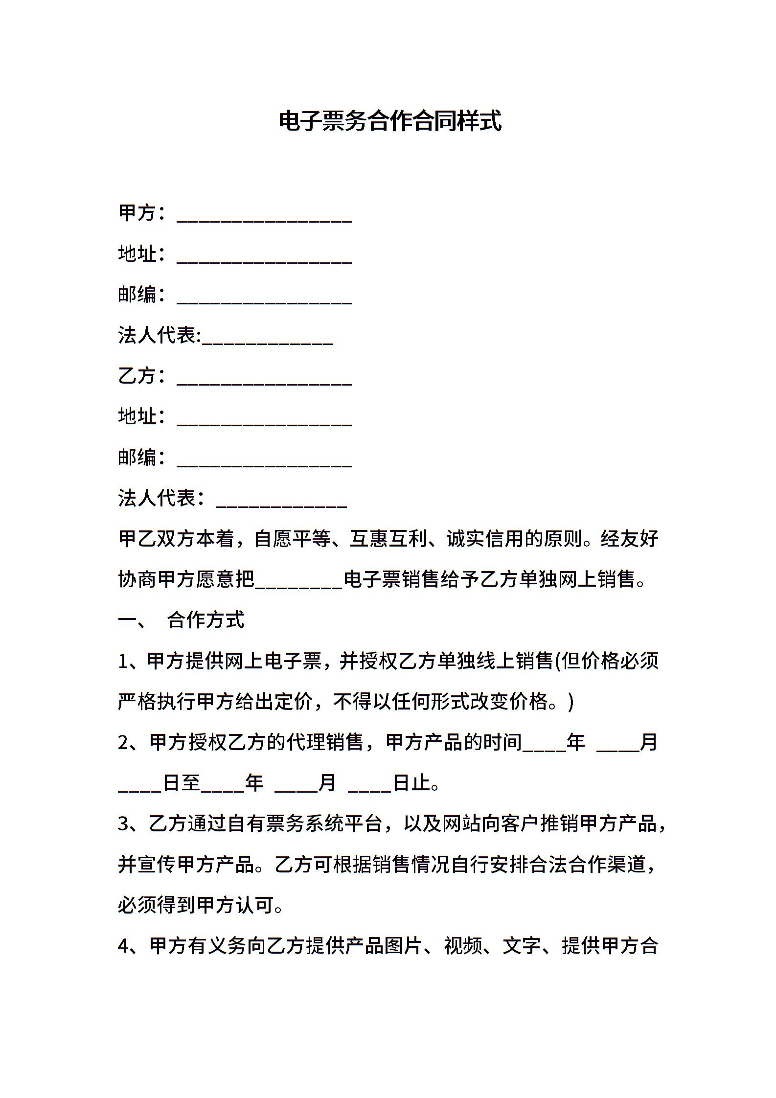 电子票务合作合同样式