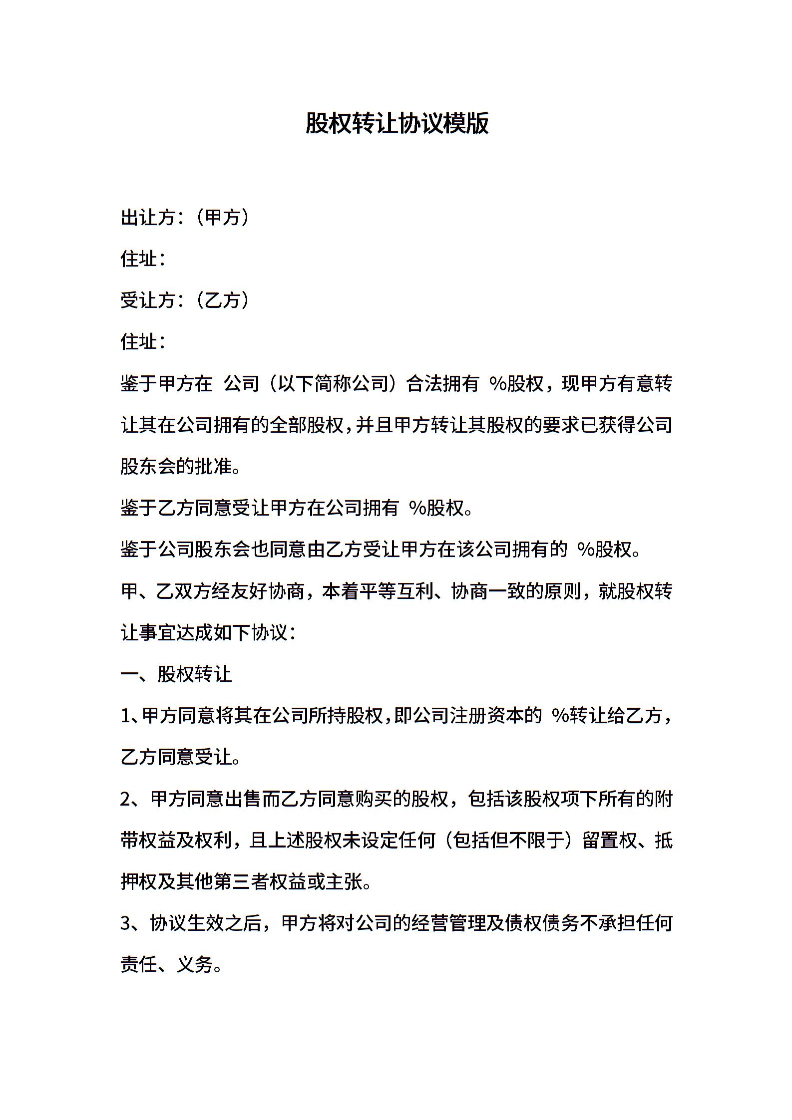 当前位置:量子办公 > 合同模板 > 股权转让协议 >