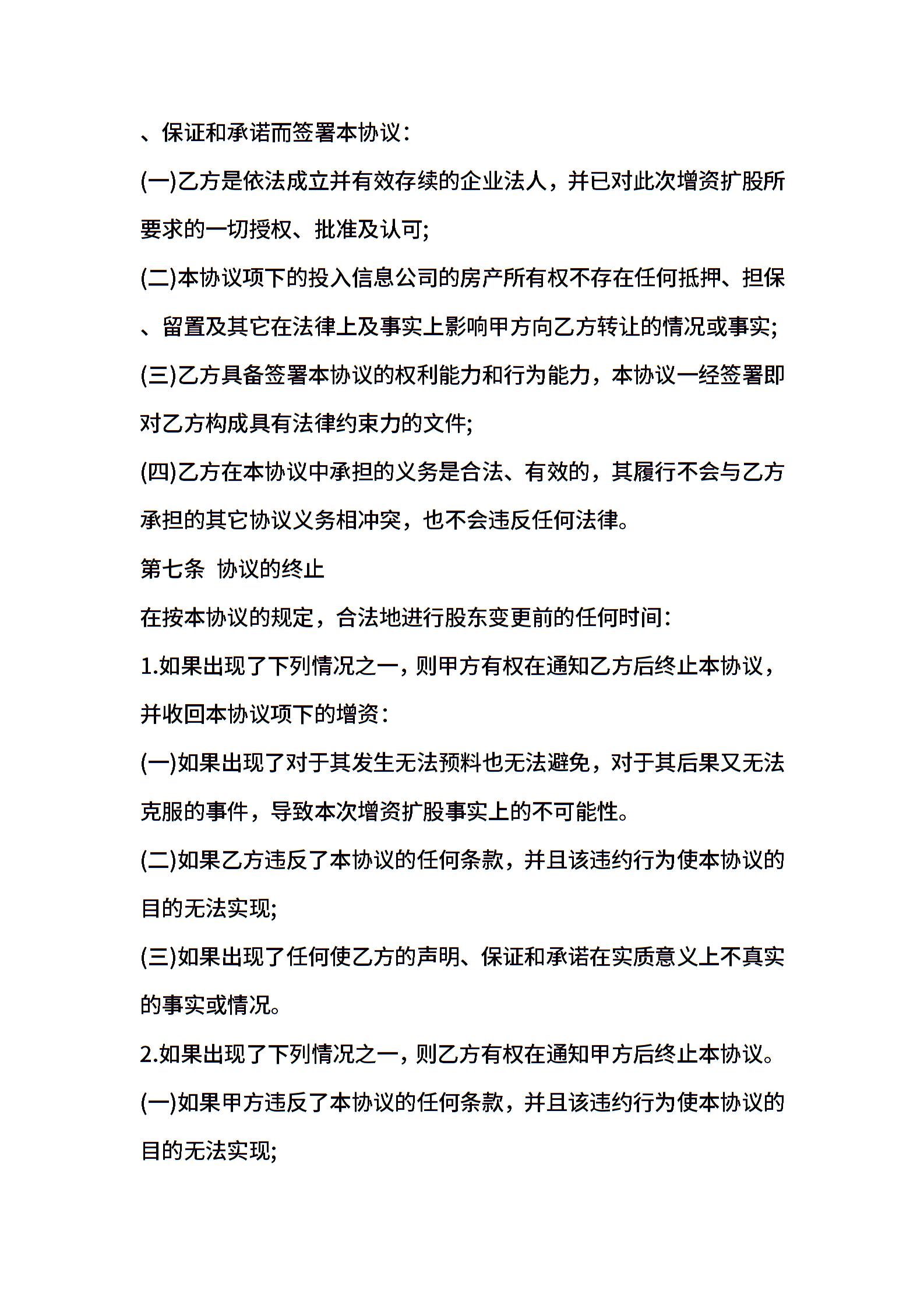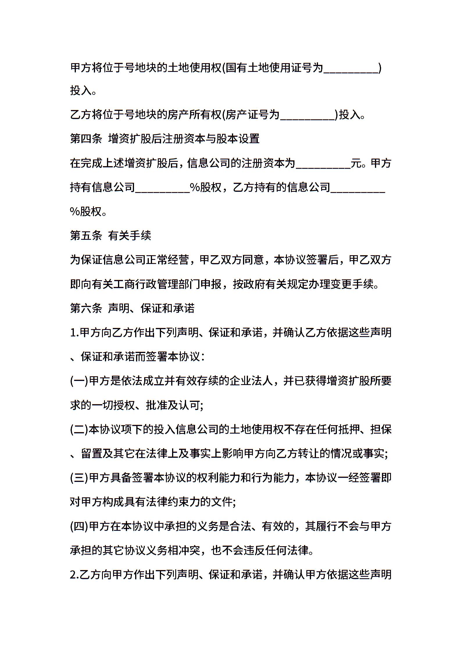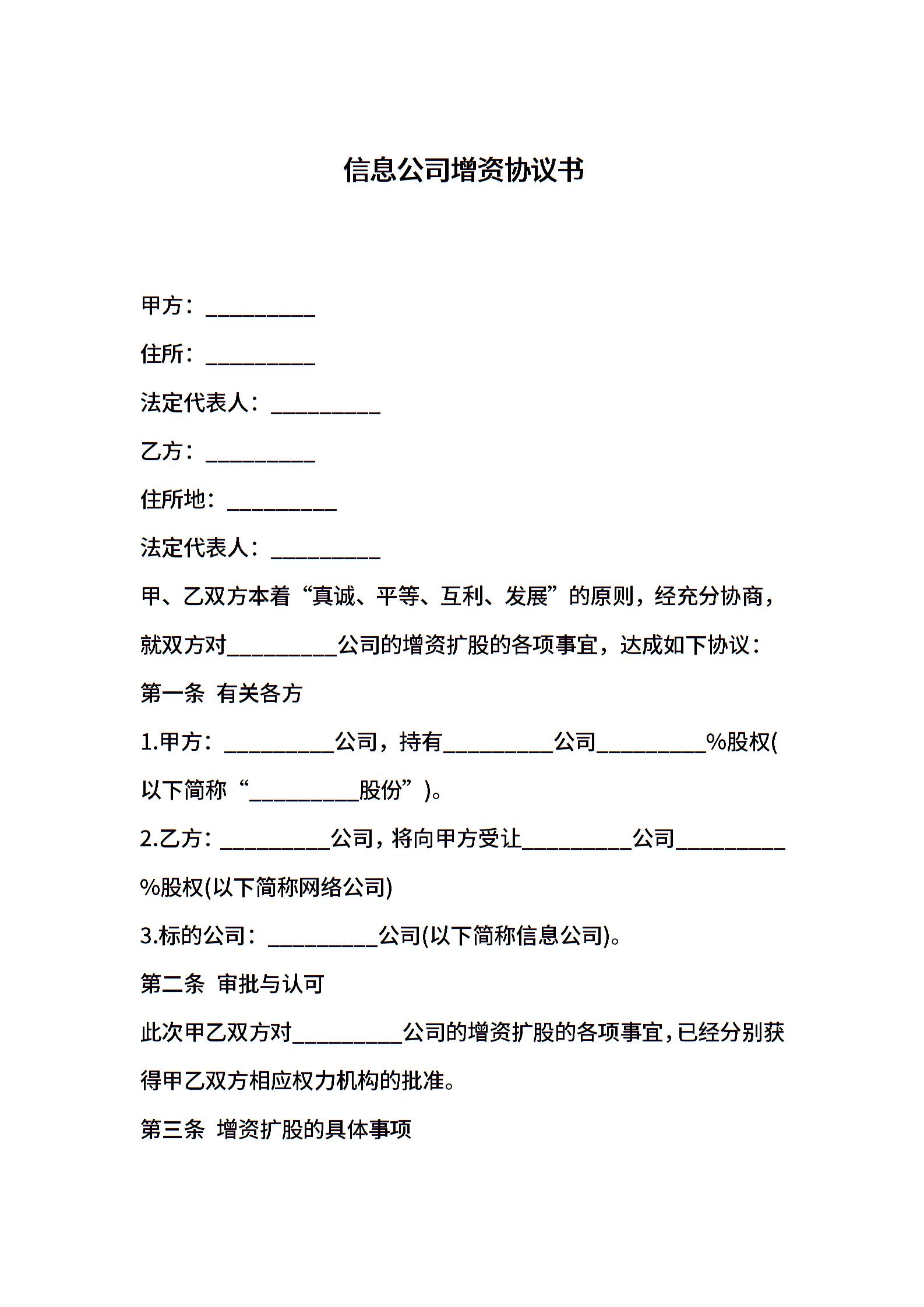 信息公司增资协议书