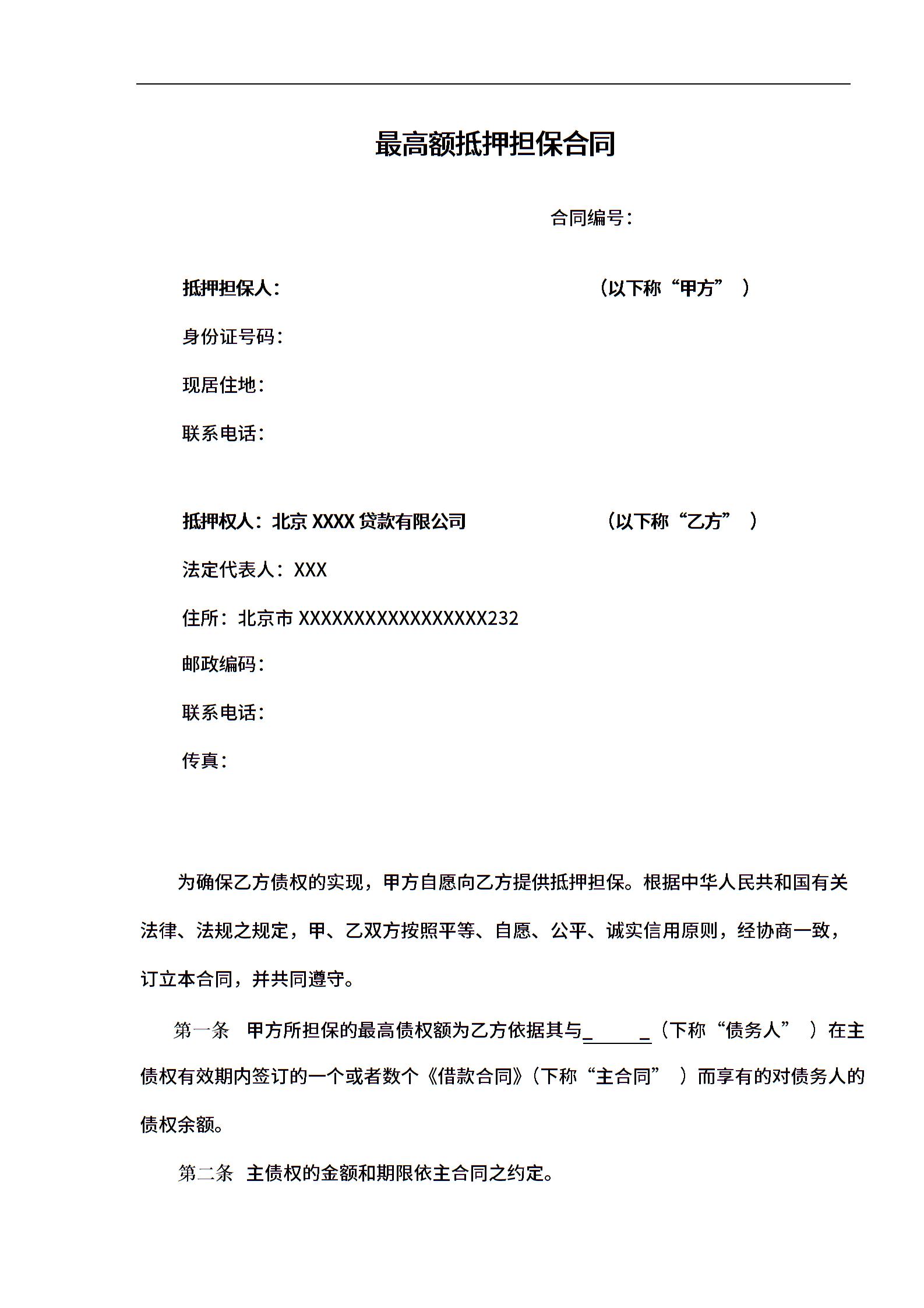 最高额抵押担保合同(个人类)律师拟定版本.docx