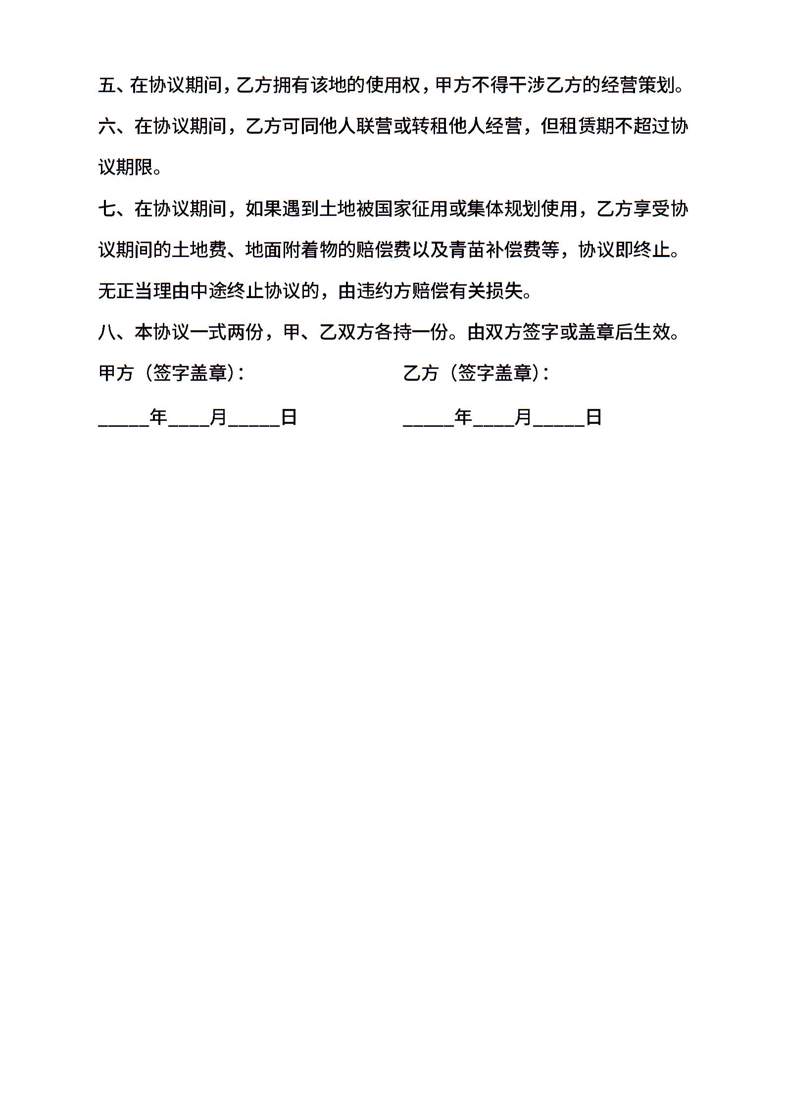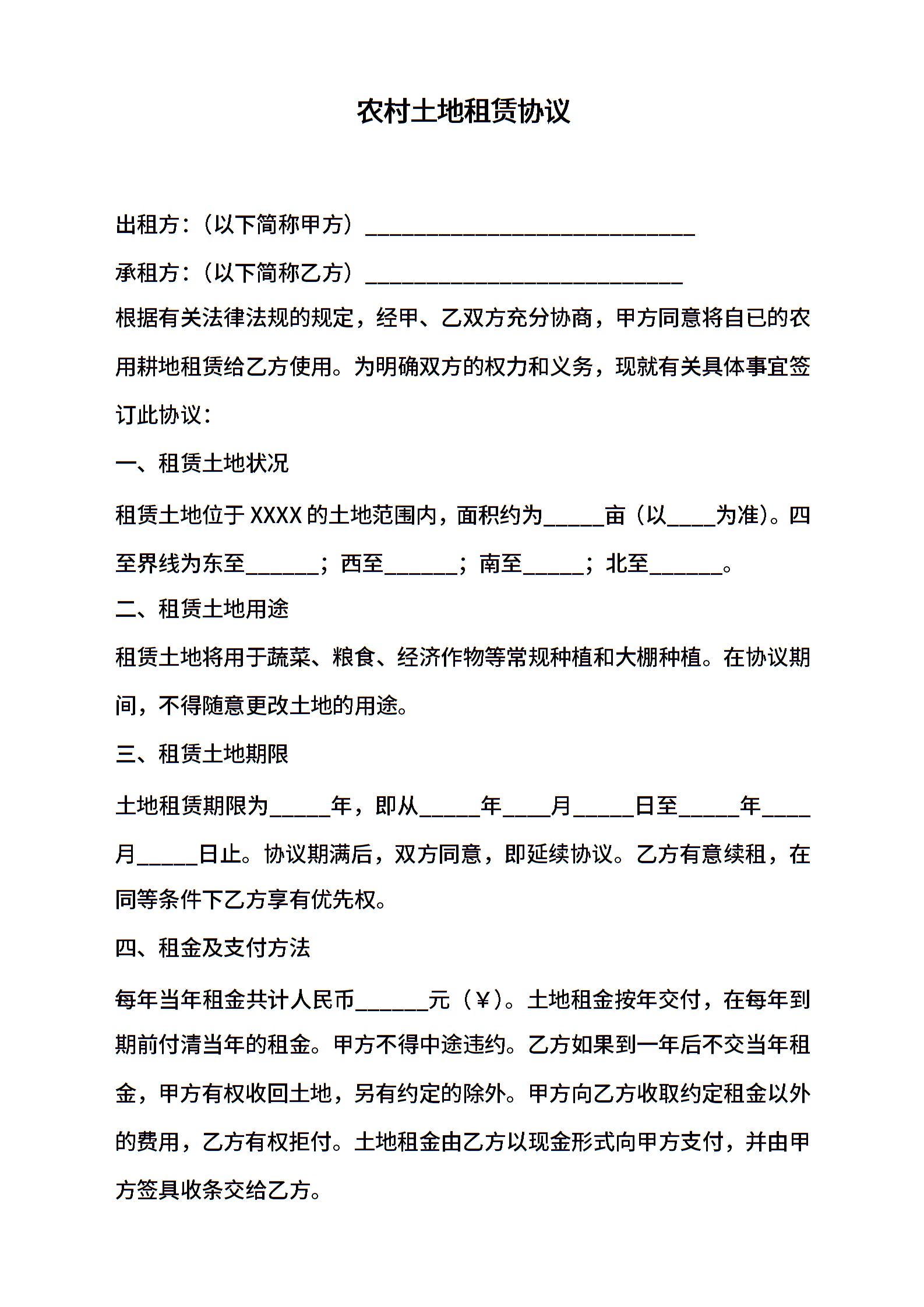 农村土地租赁协议(简易)