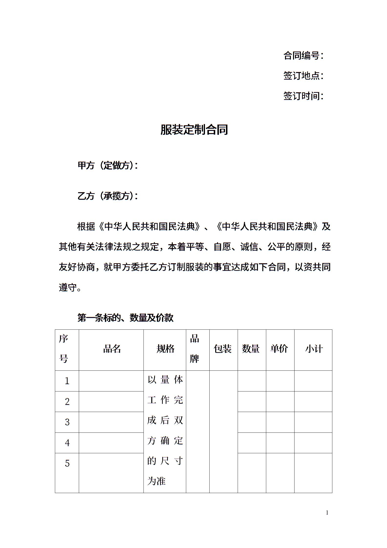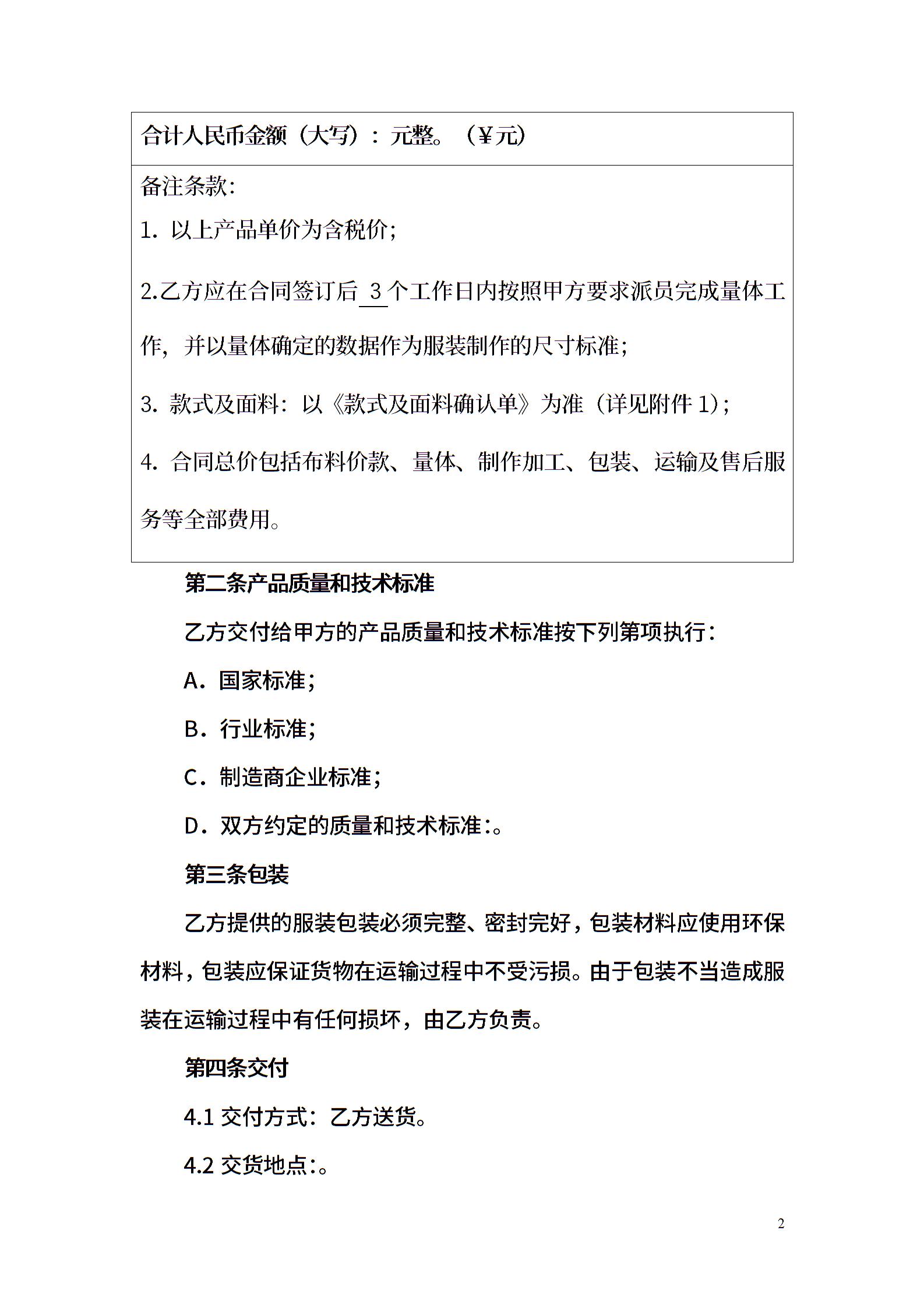 服装定制合同
