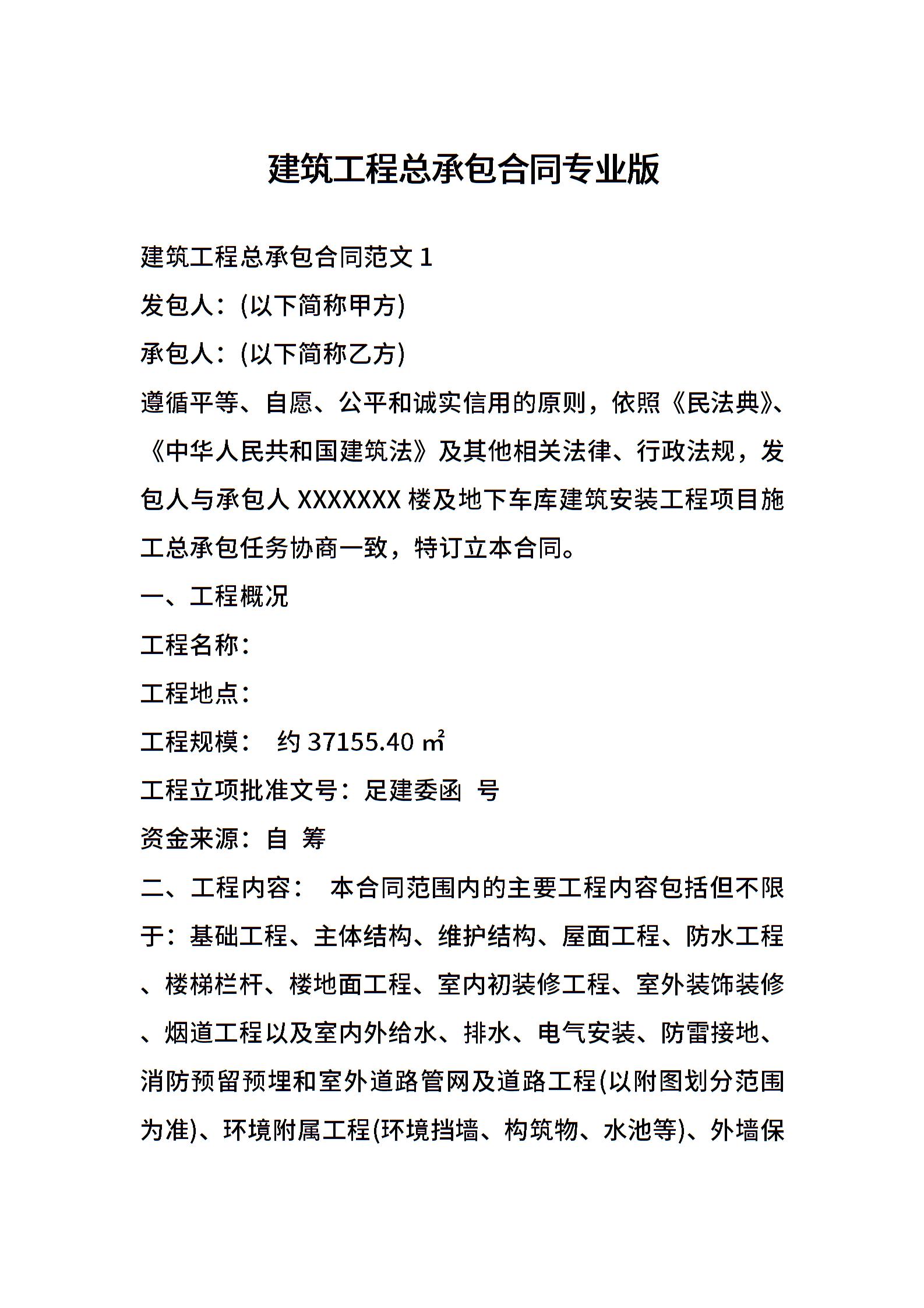 建筑工程总承包合同专业版